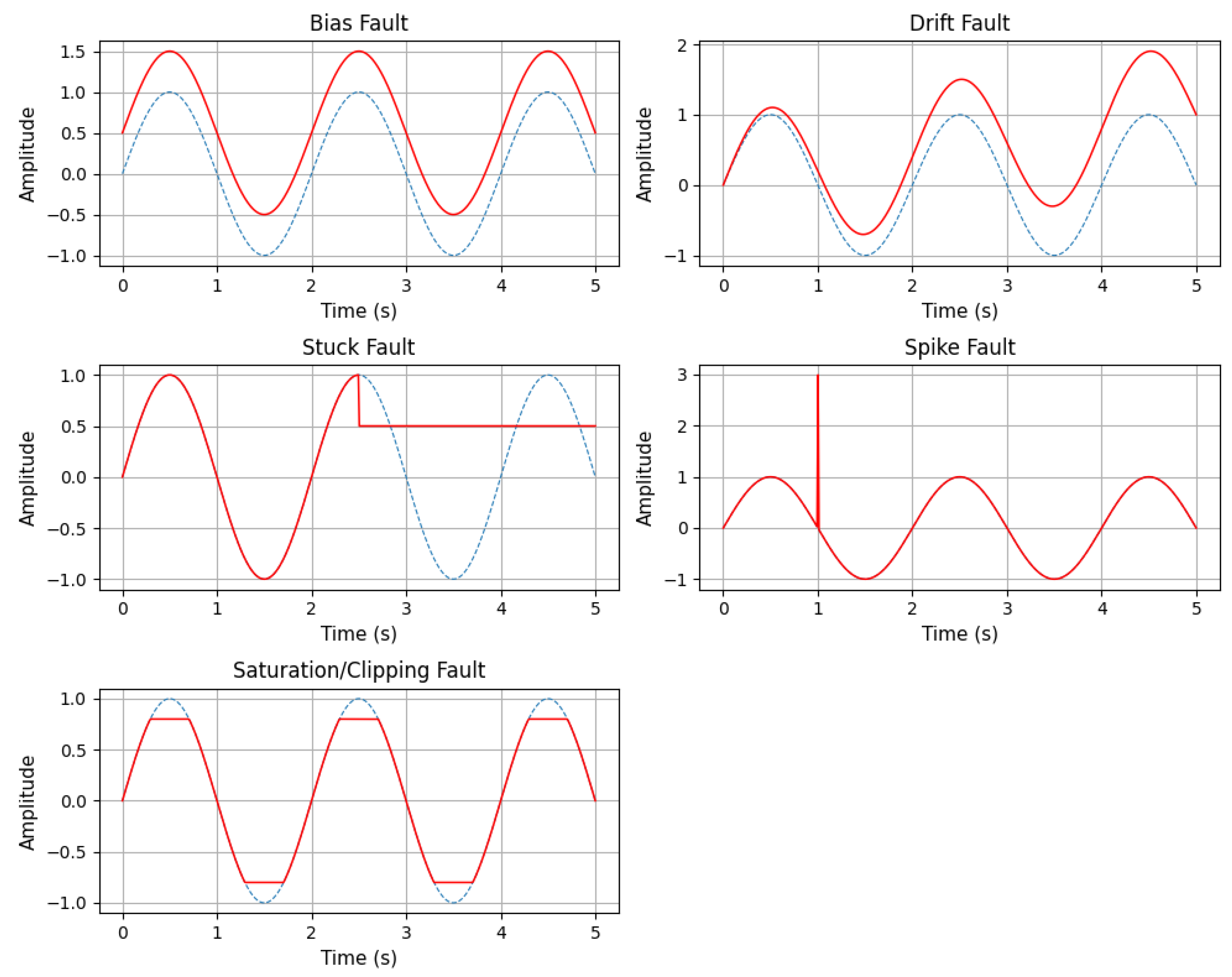 - A labeled fault dataset was created using MEMS microphone sensors, which, to the best of our knowledge, does not exist in the current literature. It includes both real faults, generated through acoustic overload and undervoltage conditions such as clipping, spike, stuck, and normal, and synthetic faults such as bias and drift.