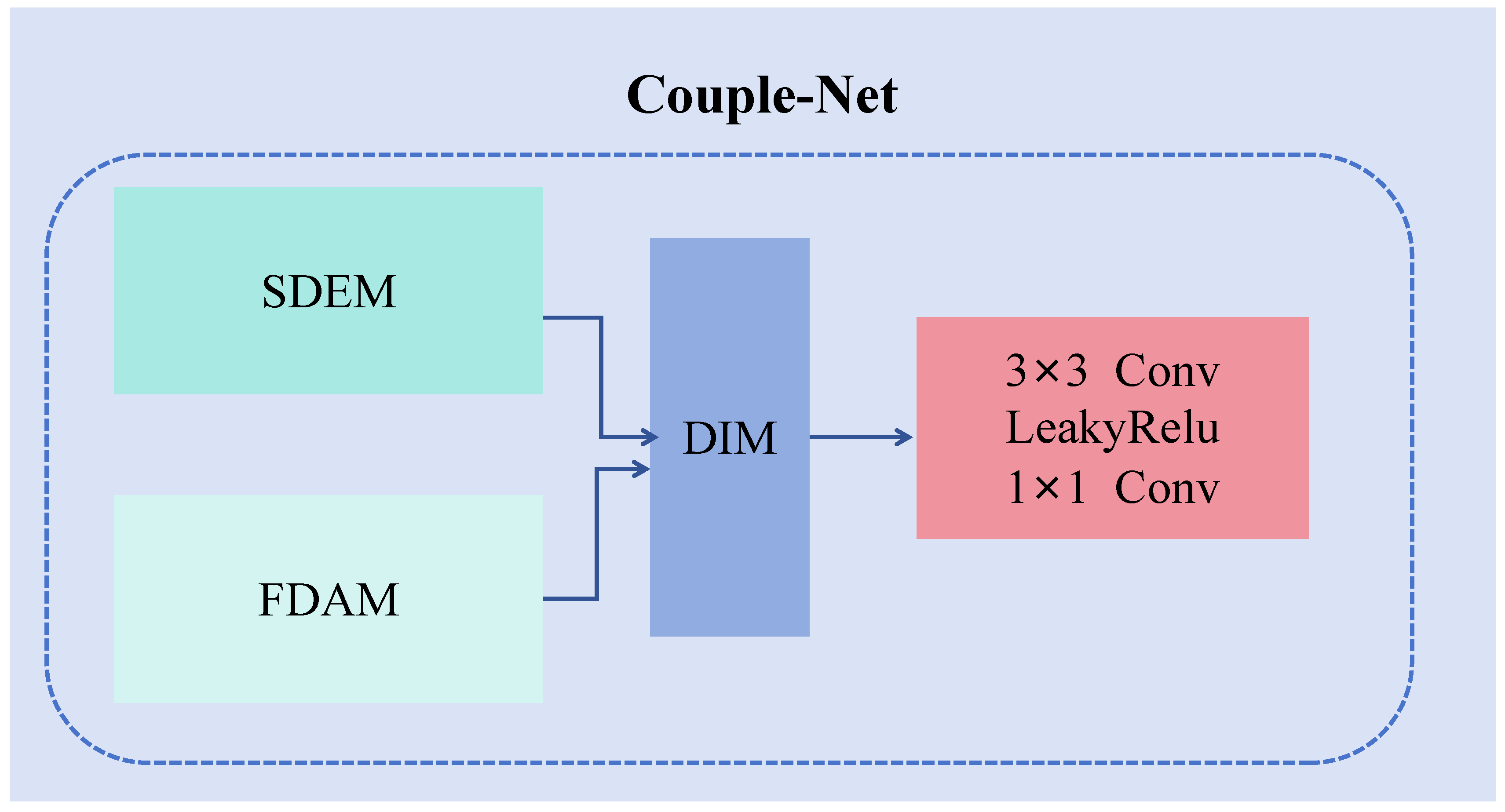 - The coupling branch incorporates a Mamba selective state space module. This mechanism is uniquely suited for the non-uniform nature of low-light images, enabling content-aware fusion: it dynamically models long-range dependencies in structured, well-lit regions while simultaneously suppressing noise propagation from dark, low-signal areas.
