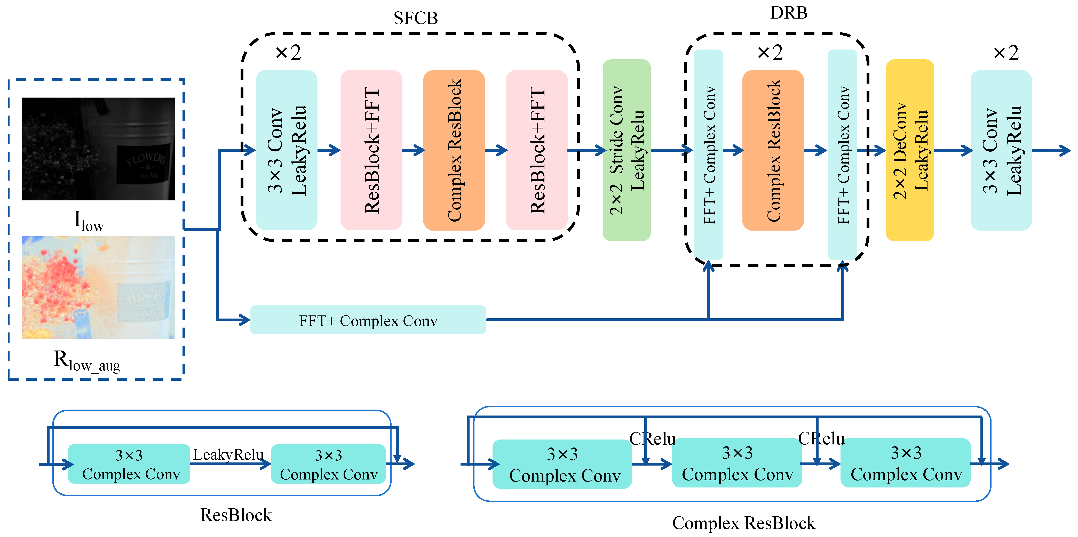 - Guan, Y.; Liu, M.; Chen, X.; Wang, X.; Luan, X. Freqspatnet: Frequency and Spatial Dual-Domain Collaborative Learning for Low-Light Image Enhancement. Electronics 2025, 14, 2220. [Google Scholar] [CrossRef]
