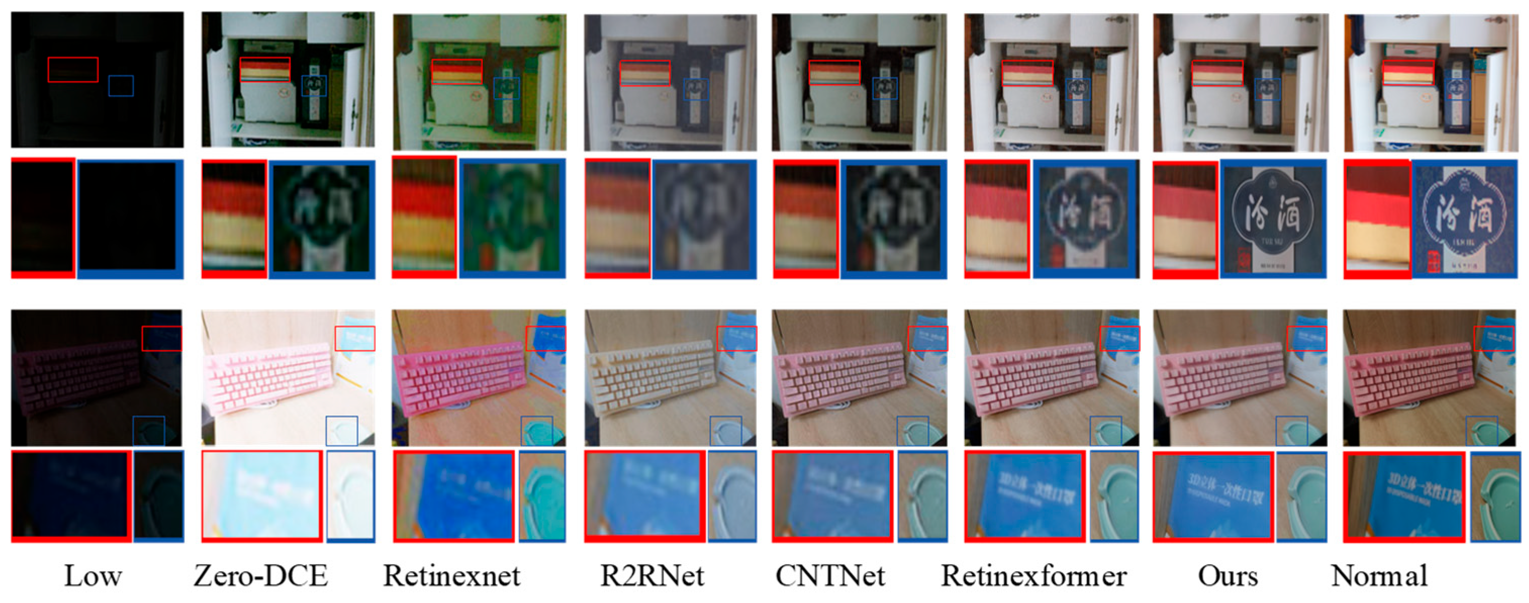- Hai, J.; Xuan, Z.; Yang, R.; Hao, Y.; Zou, F.; Lin, F.; Han, S. R2rnet: Low-Light Image Enhancement Via Real-Low to Real-Normal Network. J. Vis. Commun. Image Represent. 2023, 90, 103712. [Google Scholar] [CrossRef]