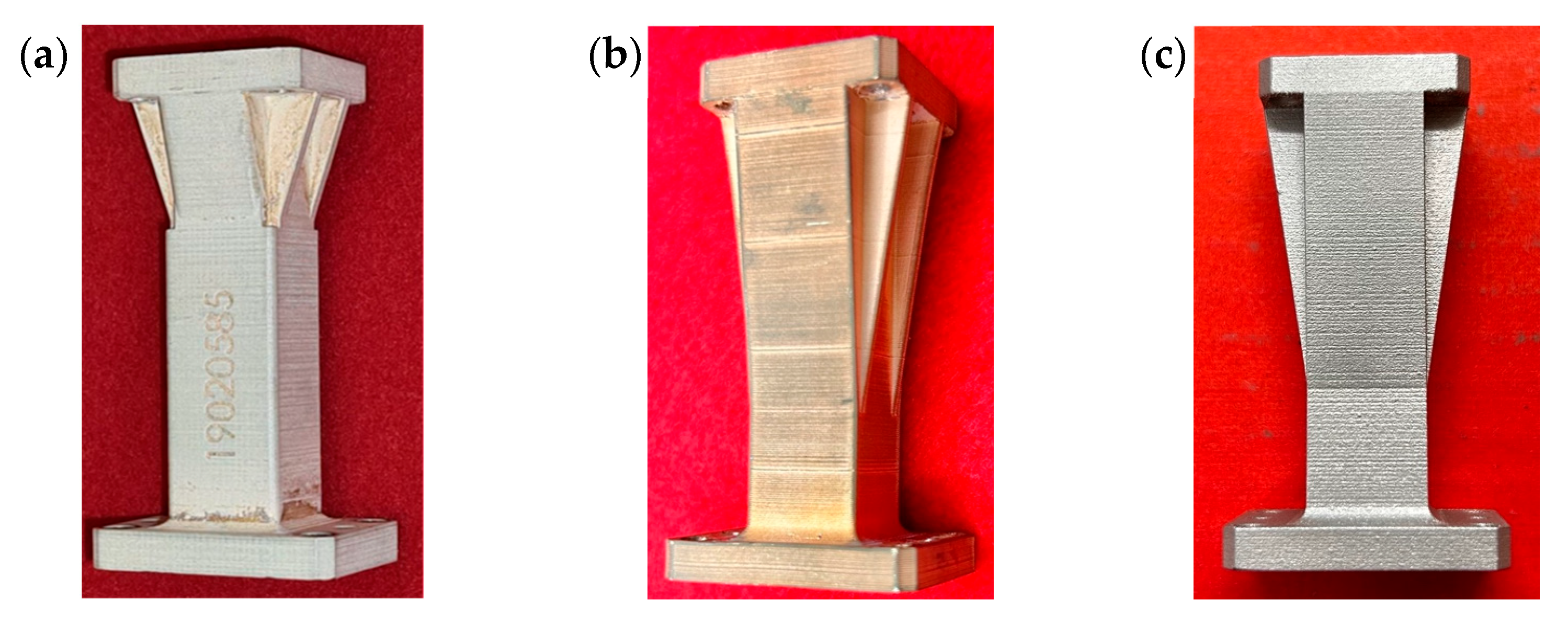- Martín-Iglesias, P.; Marechal, M.; Calves, P.; Hazard, M.; Pambaguian, L.; Brandao, A.; Castillo, S.R.; Martin, T.; Percaz, J.; Iza, V.; et al. Metal 3D printing for RF/microwave high-frequency parts. CEAS Space J. 2022, 15, 7–25. [Google Scholar] [CrossRef]