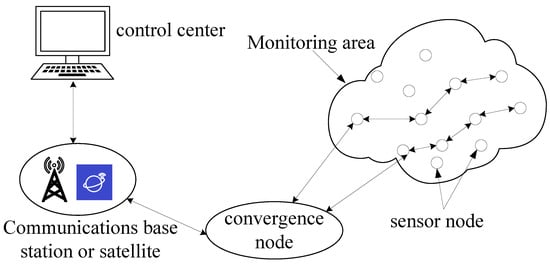 With the continuous development of technology, Wireless Sensor Networks (WSNs), as a vital component of the Internet of Things (IoT), have gained widespread application driven by the demand for intelligent systems [1]. WSNs constitute wireless multi-hop communication network systems composed of sensor nodes featuring low cost, low power consumption, and self-reconfiguration capability, with capabilities for sensing, collecting, and transmitting physical or chemical environmental parameters [2]. In recent years, they have been extensively deployed in various domains including environmental monitoring, healthcare, smart buildings, and industrial automation [3], with their working structure shown in Figure 1. Furthermore, accurate monitoring and tracing of information sources in WSNs are crucial for ensuring efficient network operation. Location information serves not only as a prerequisite for the validity of sensed data, but also as the foundation for efficient resource scheduling and optimization. Therefore, the development of localization technologies is of paramount importance.