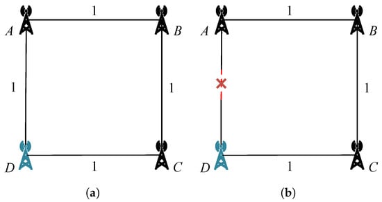 Simple Topological Structure. (a) Initial state. (b) State after a link failure.