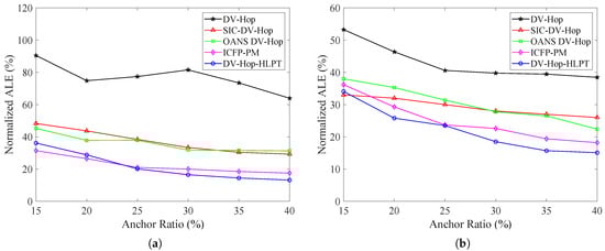 Comparison of N-ALE for different localization methods under different anchor node ratios. (a) C-shaped area. (b) Square area.
