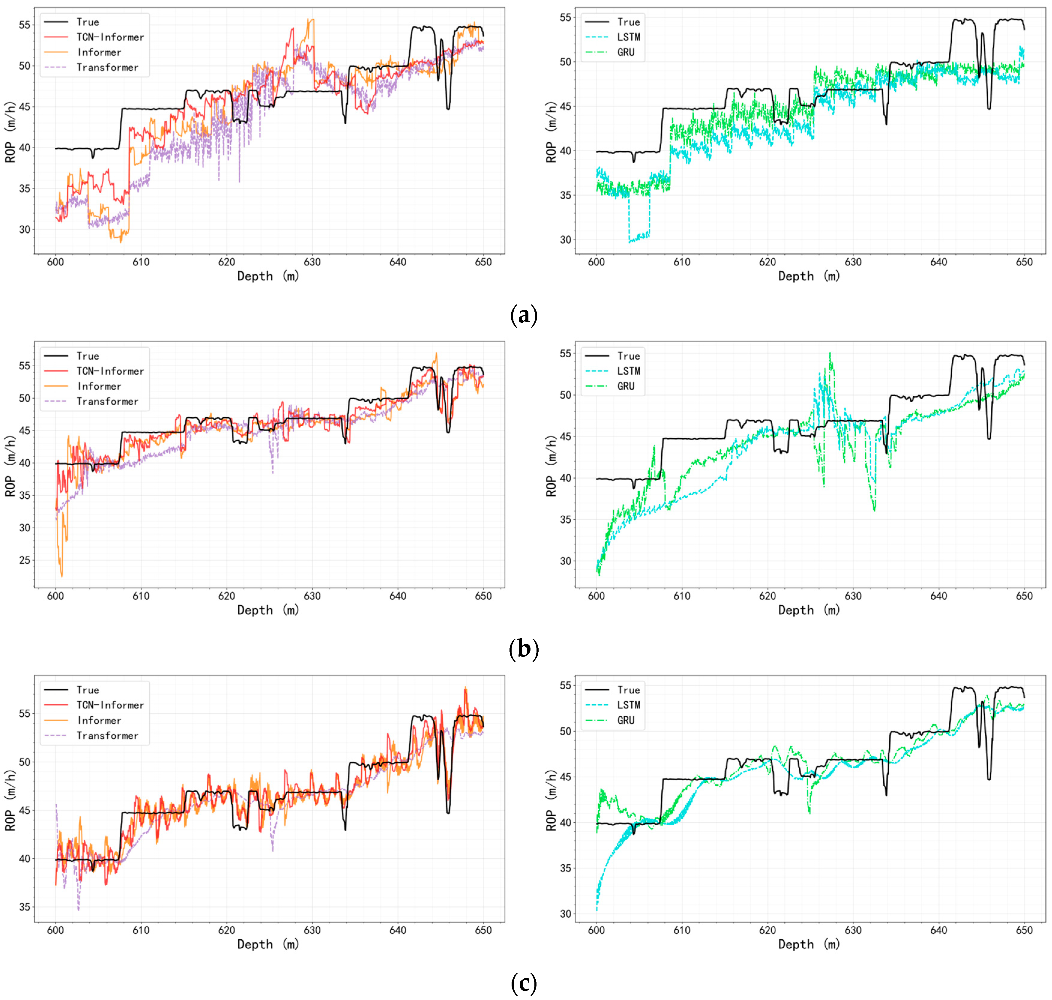 4.7. TCN–Informer vs. Other Sequence Models ROP Prediction Comparison