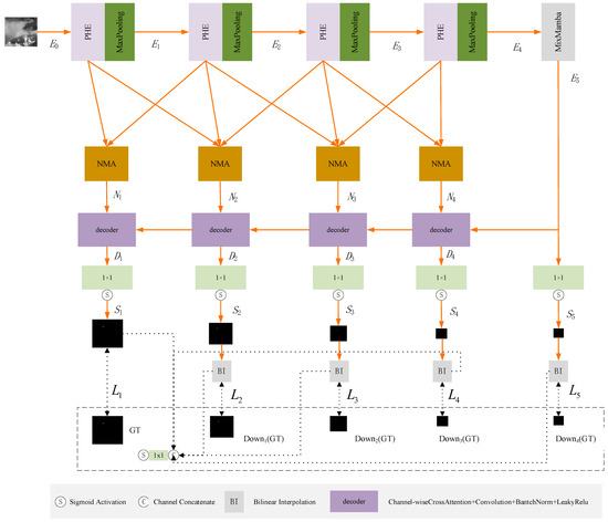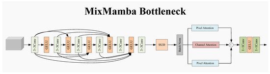 Infrared small target detection (IRSTD) is hindered by low signal-to-noise ratios, minute object scales, and strong target–background similarity. Although long-range skip fusion is exploited in SCTransNet, the global context is insufficiently captured by its convolutional encoder, and the fusion block remains vulnerable to structured clutter. To address these issues, a Mamba-enhanced framework, MixMambaNet, is proposed with three mutually reinforcing components. First, ResBlocks are replaced by a perception-aware hybrid encoder, in which local perceptual attention is coupled with mixed pixel–channel attention along multi-branch paths to emphasize weak target cues while modeling image-wide context. Second, at the bottleneck, dense pre-enhancement is integrated with a selective-scan 2D (SS2D) state-space (Mamba) core and a lightweight hybrid-attention tail, enabling linear-complexity long-range reasoning that is better suited to faint signals than quadratic self-attention. Third, the baseline fusion is substituted with a non-local Mamba aggregation module, where DASI-inspired multi-scale integration, SS2D-driven scanning, and adaptive non-local enhancement are employed to align cross-scale semantics and suppress structured noise. The resulting U-shaped network with deep supervision achieves higher accuracy and fewer false alarms at a competitive cost. Extensive evaluations on NUDT-SIRST, NUAA-SIRST, and IRSTD-1k demonstrate consistent improvements over prevailing IRSTD approaches, including SCTransNet. Full article