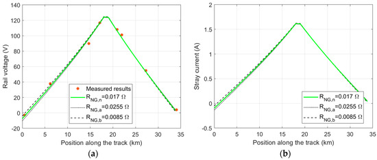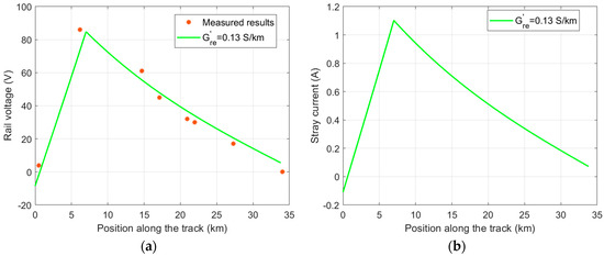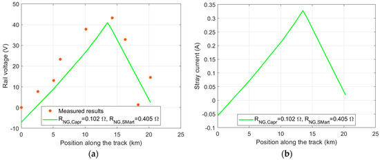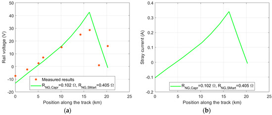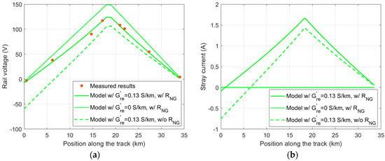 Despite advancements in mitigating stray current in railway systems, and their impact on nearby installations (i.e., pipelines), challenges remain, necessitating ongoing research and close collaboration between academia and the railway industry. This paper describes the relevant results of a joint industry–academia research project focused on the experimental validation of a reduced complexity circuit model to evaluate the rail potential and the associated stray current directly into the soil. It will be shown that the proposed circuit model is adaptable to various railway lines. Using a lumped parameter approach, the model simplifies spatial discretization without sacrificing accuracy; the relevant resistance and admittance parameters at the sub-stations and along the rail return path are identified, and their impact is studied for the subsequent experimental step. Two real scenarios involve two railway segments in southern and central Italy, which are also different in the geological profile of the terrain. The rail voltage along the two lines is measured and compared with the profile predicted by the lumped circuit model showing the latter’s accuracy. The circuit, validated by the experimental measurements, provides an indirect evaluation of the magnitude of the stray current flowing into the earth. Initially designed for uniform terrain, it can be expanded to include surrounding infrastructure and unintended stray current paths. This framework offers broad applicability and precision across diverse railway environments where nearby critical installations require the estimation of the stray current for the possible subsequent development of countermeasures for their reduction. Full article