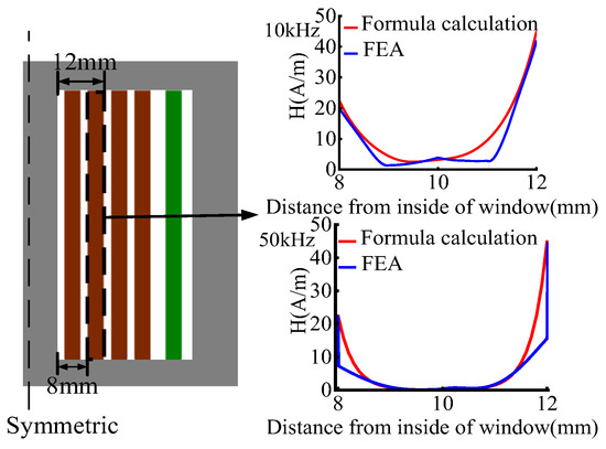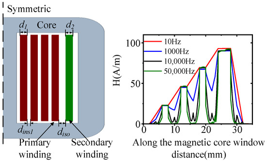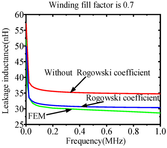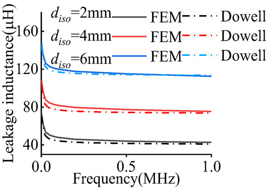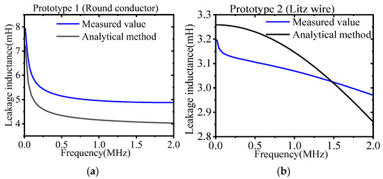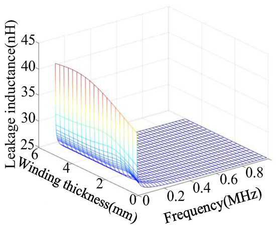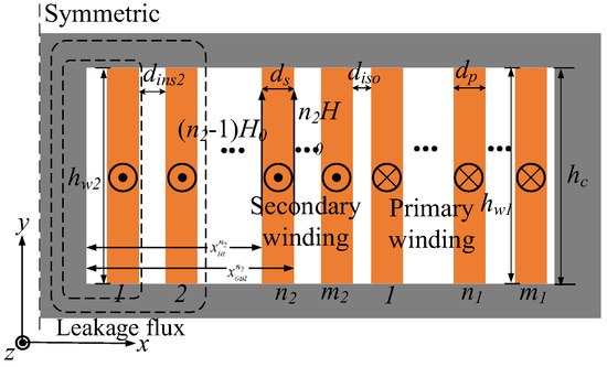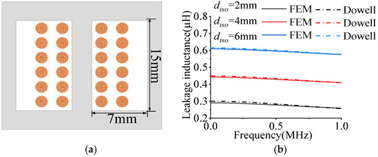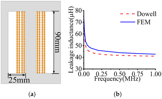The leakage inductance of high-frequency transformers (HFTs) is a critical parameter affecting the performance of power electronic equipment, such as DC-DC converters. During the transformer design phase, by precisely calculating and retaining an appropriate amount of leakage inductance, the independent inductors in the original topology can be replaced, thereby reducing the size of the converter. This paper derives the analytical expression for the magnetic field distribution in the core window, based on Dowell’s one-dimensional model system. A leakage inductance calculation model is established using the square integral of the magnetic field strength. The study investigates the effects of winding spatial distribution and operating frequency on leakage inductance. Finally, the model’s accuracy is verified through experimental measurements, with the results aligning closely with those obtained from the analytical method, and the error falling within a reasonable range. Full article