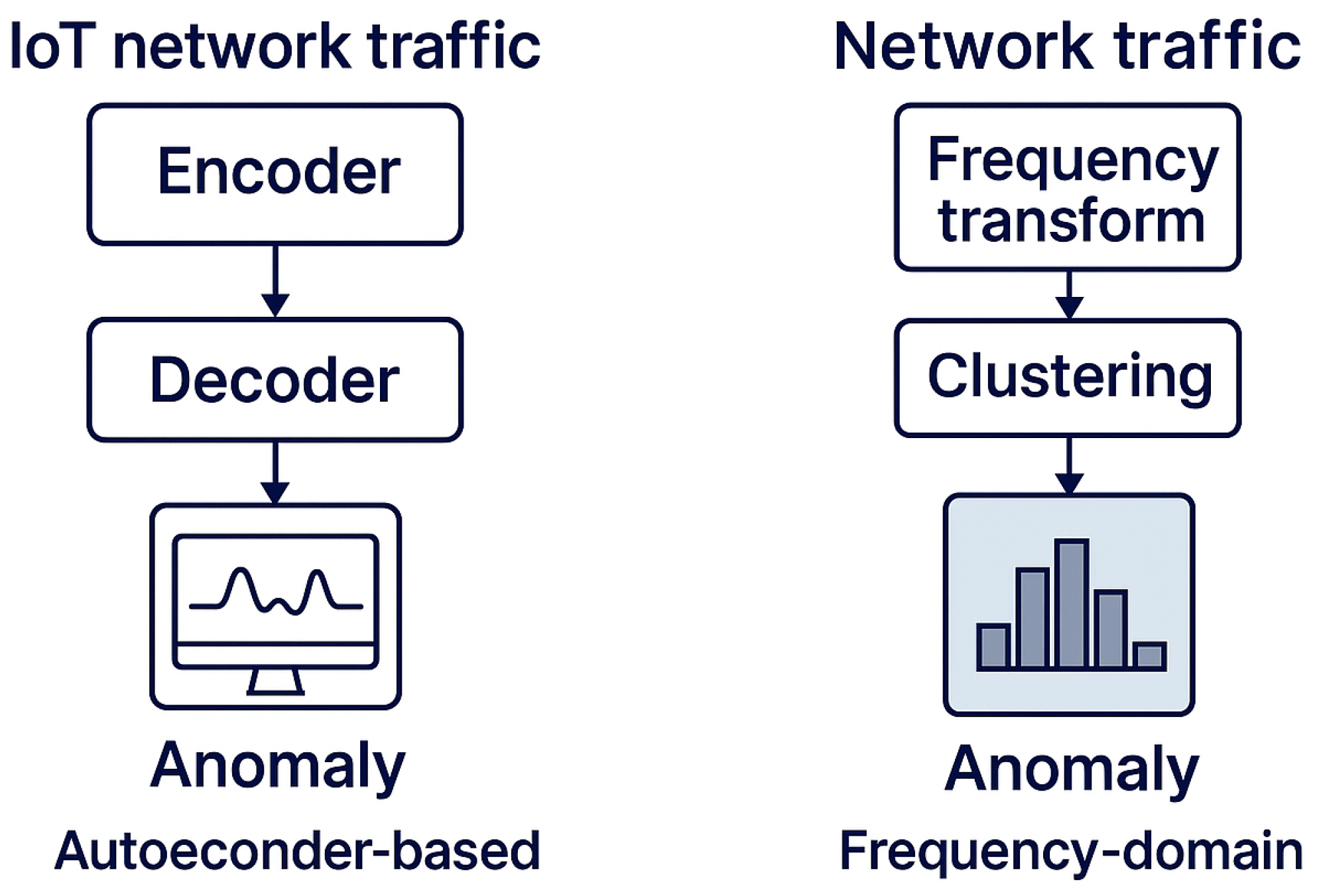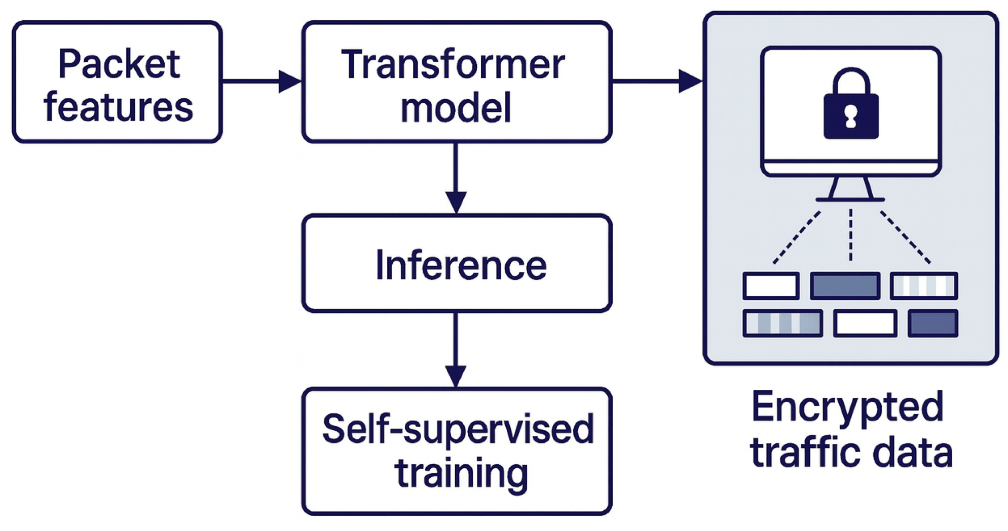 The machine learning approaches surveyed in this section broadly fall into two overlapping categories. The first is network traffic analysis, which focuses on identifying and classifying traffic patterns based on observable characteristics like flow timing, burst structure, and packet size distribution, even when payload contents are inaccessible. For example, encrypted bursts of traffic can be analyzed to infer the originating application or detect covert channels [