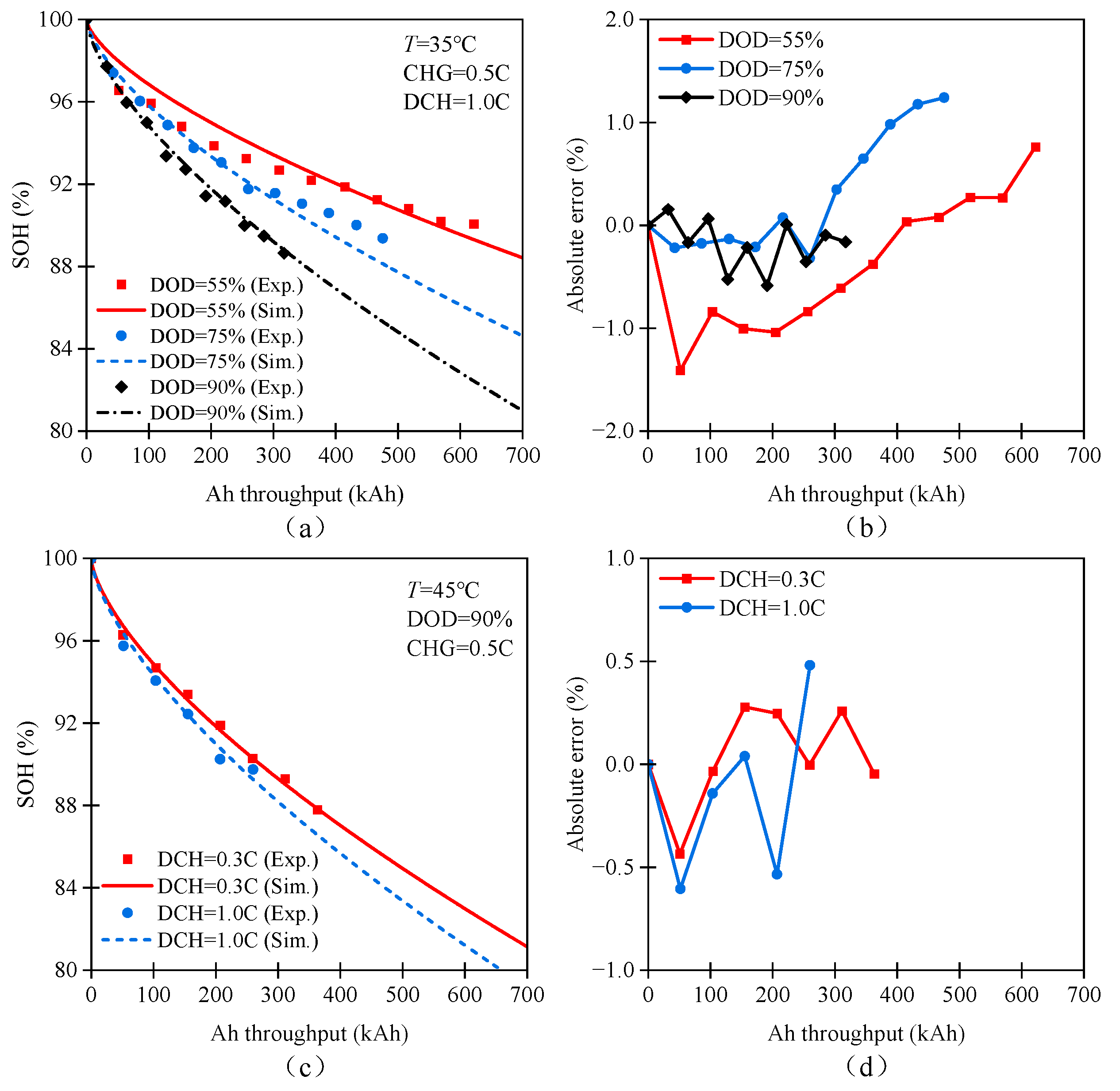 23]. The experimental conditions covered different temperatures (25 °C and 40 °C), discharge depths (40% and 80%), and charge/discharge rates