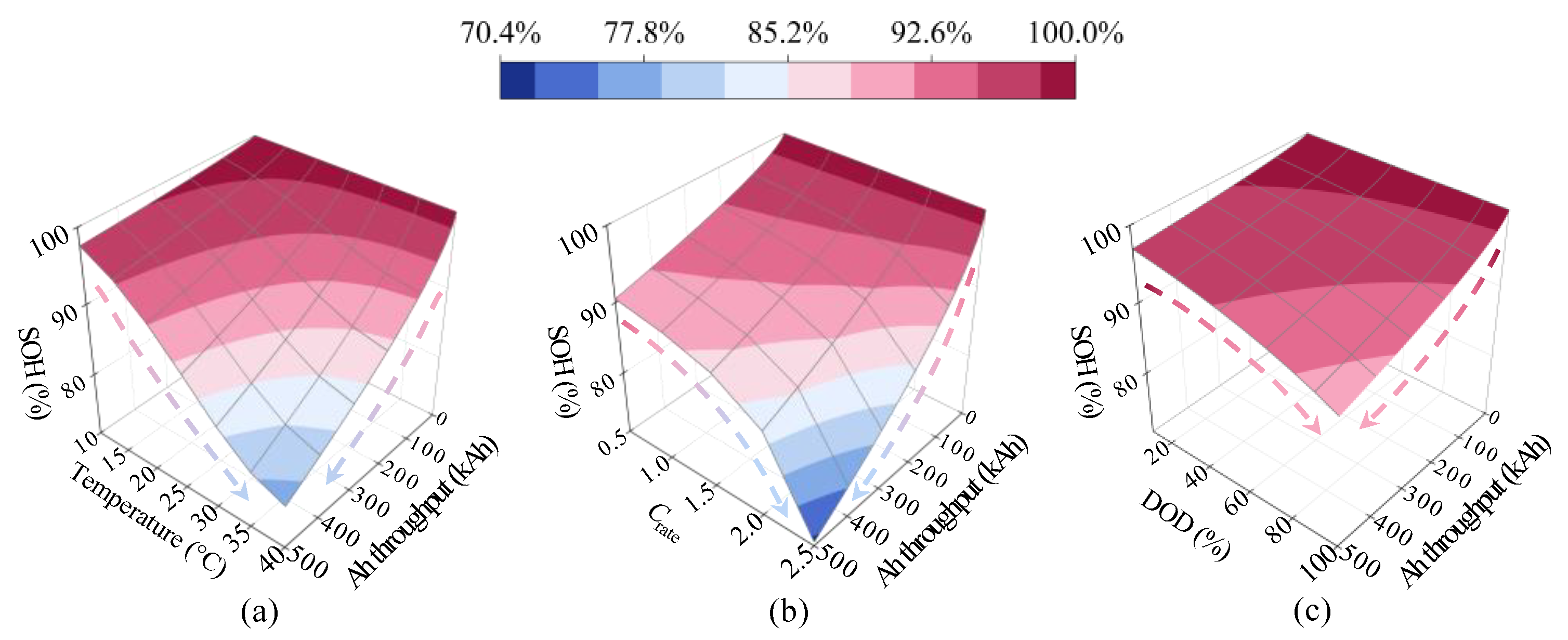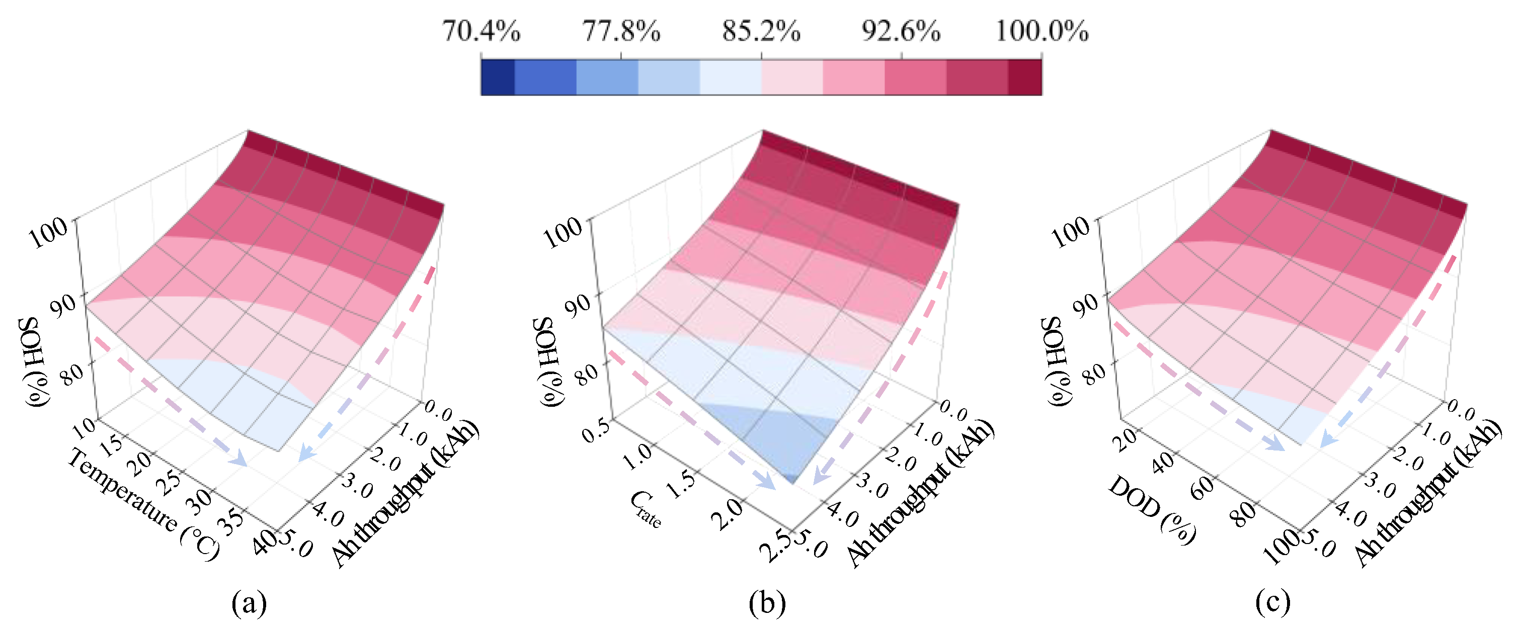 Qloss is the total capacity loss rate. The SOH of the battery can be calculated as: