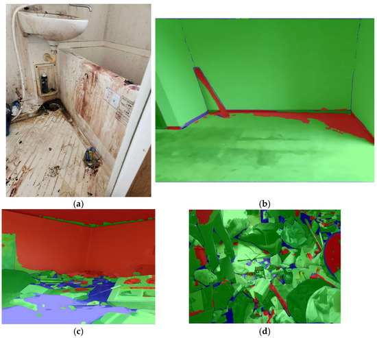 One promising direction is the integration of robotics and artificial intelligence for autonomous environmental monitoring and cleaning. Robotic vacuum cleaners, once designed primarily for simple household convenience, are increasingly envisioned as part of a broader health and safety infrastructure [6,7,8,9,10]. If robots could not only perform cleaning but also assist in the early detection of hazardous conditions—such as clutter accumulation, mold growth, or uninhabitable indoor environments—they could both reduce occupational strain for professionals and contribute to safer living conditions for vulnerable populations. To achieve this, however, robots must acquire more advanced perceptual capabilities, enabling them to distinguish between diverse and contaminated indoor scenes in real-world conditions. In computer vision, significant progress has been made in object recognition [11,12,13], semantic segmentation, and floor-surface detection [14,15,16,17], all of which are essential components for autonomous navigation and cleaning. Research on object recognition has benefited from the rapid development of deep neural networks, allowing systems to identify furniture, debris, and personal items with increasing accuracy. Similarly, floor recognition—the ability to detect and isolate traversable areas in cluttered or low-quality images—has become a central focus, as robots must operate reliably even in challenging environments. However, while these advances provide a technical foundation, the classification of room-level conditions remains a challenging problem. In particular, distinguishing between “normal,” “cluttered,” and “hazardous” indoor environments requires not just visual cues but also semantic understanding.