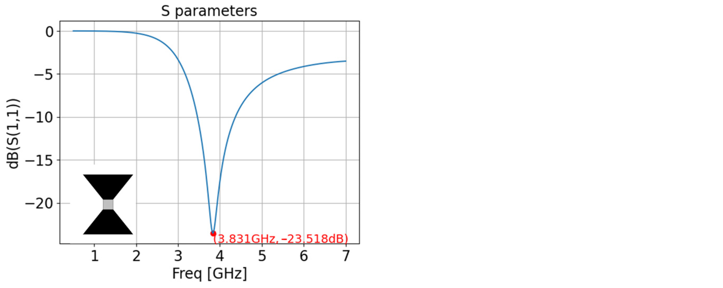 We simulated three wideband antennas in HFSS to generate high-quality training data. Centered near 3.5 GHz, the designs were constrained to maintain a return loss (S