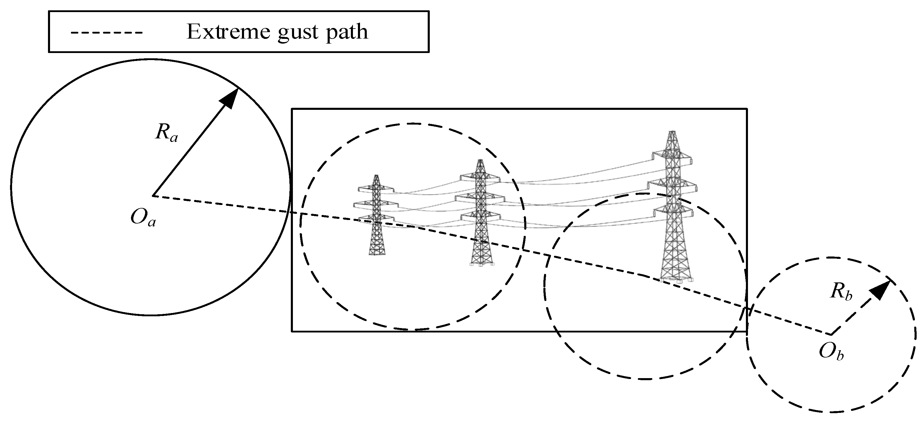 In Equation (13), D w r is the trajectory distance of extreme gusts in the affected power system area, and V w is the movement speed of the center of extreme gusts in this area.