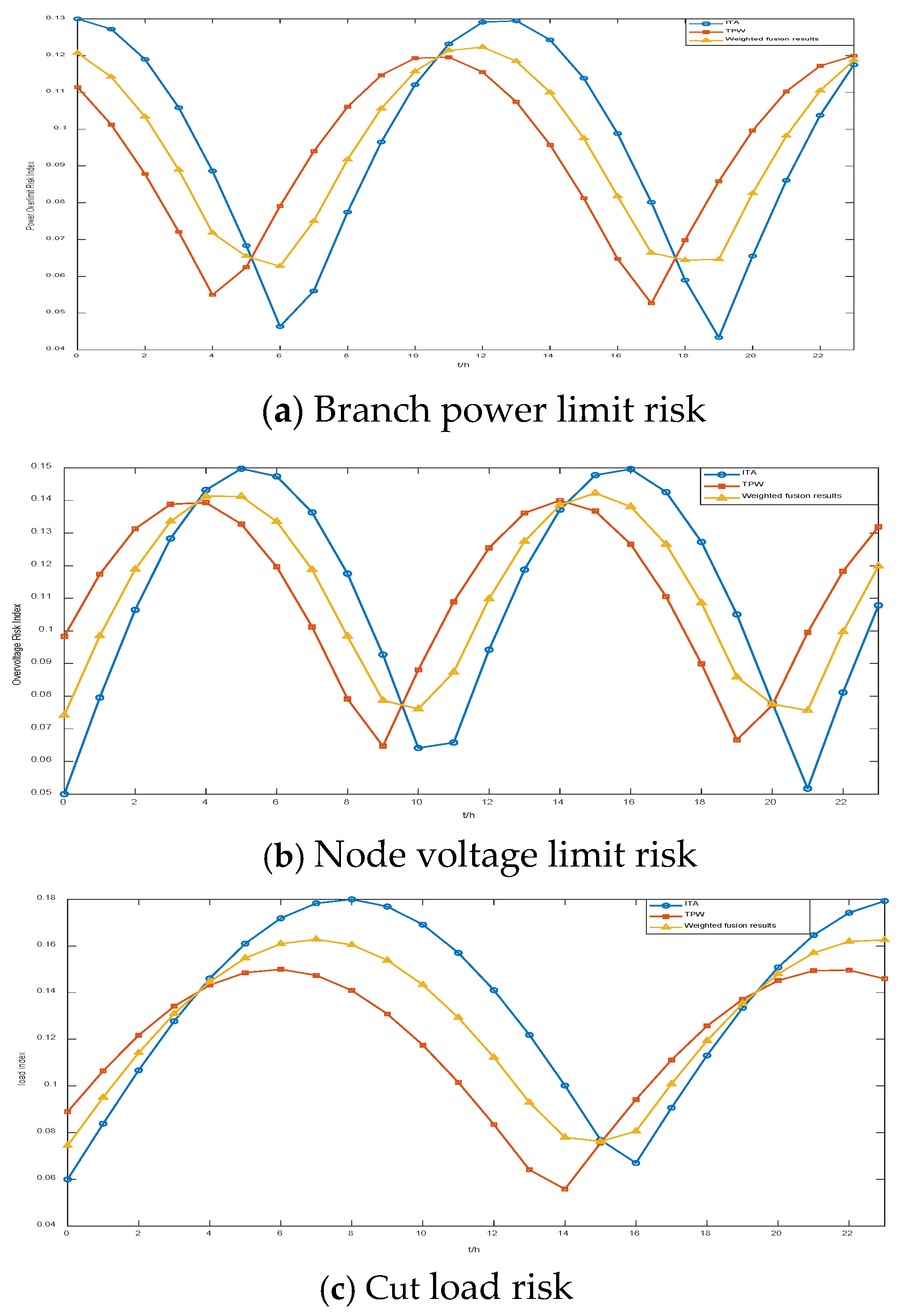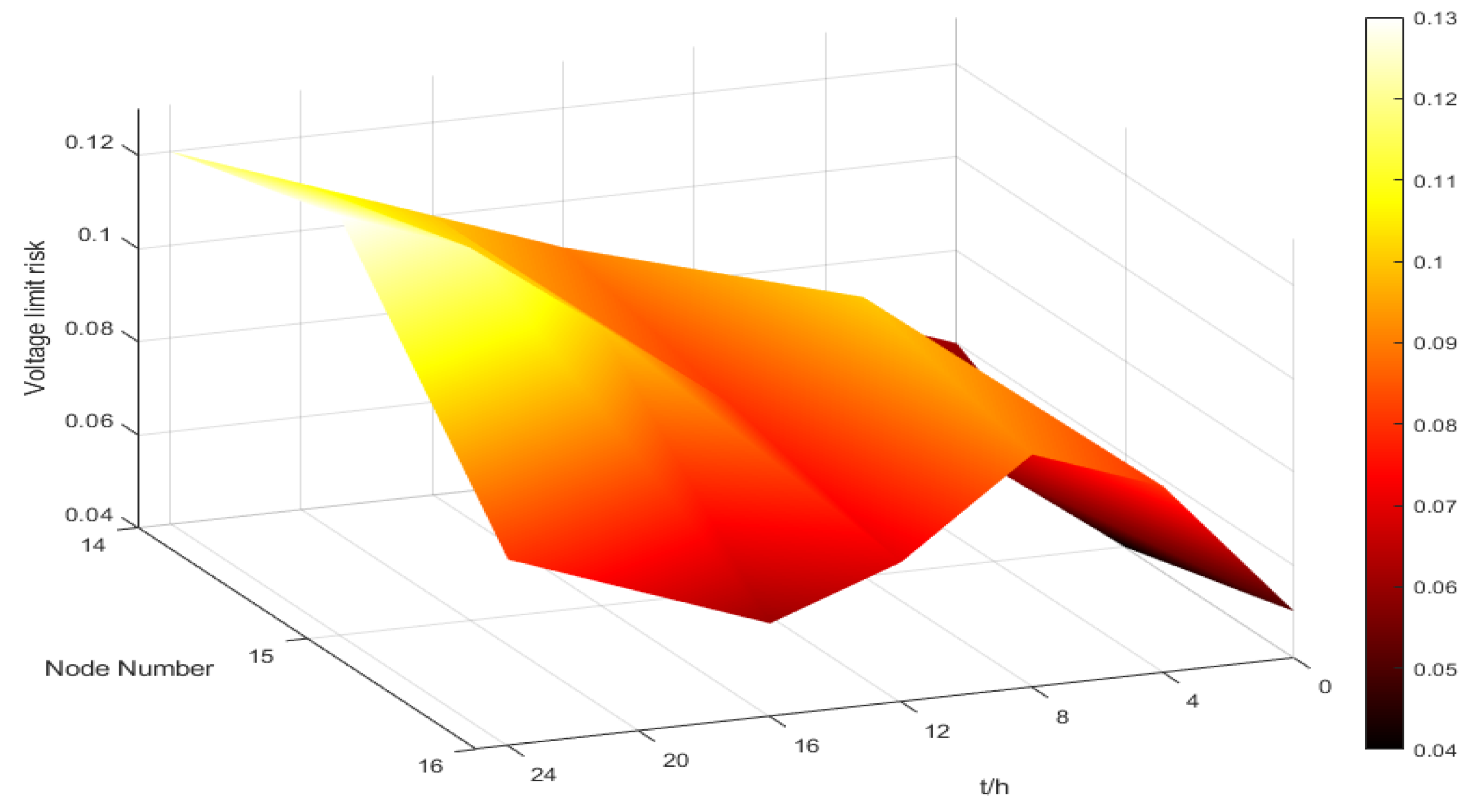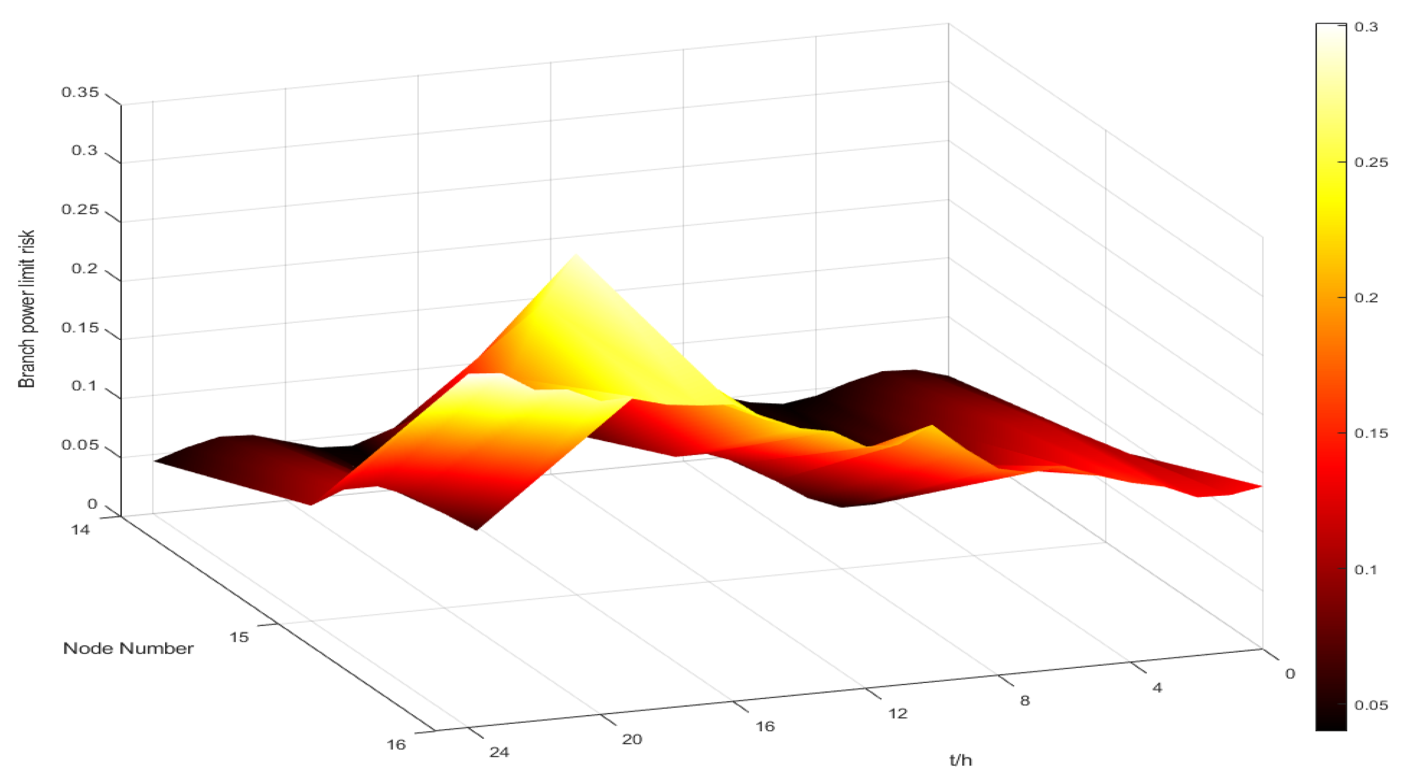 Figure 15. Node voltage limit risk, branch power limit risk, load shedding risk.