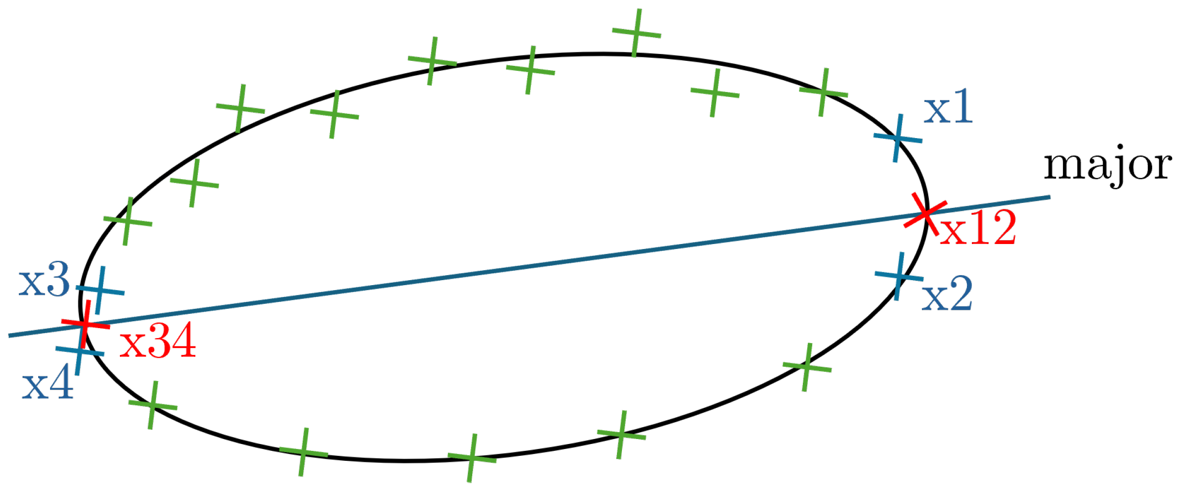 - Distance-based: for each complete ellipse, we calculate the sequence of data points with the maximum average distance.