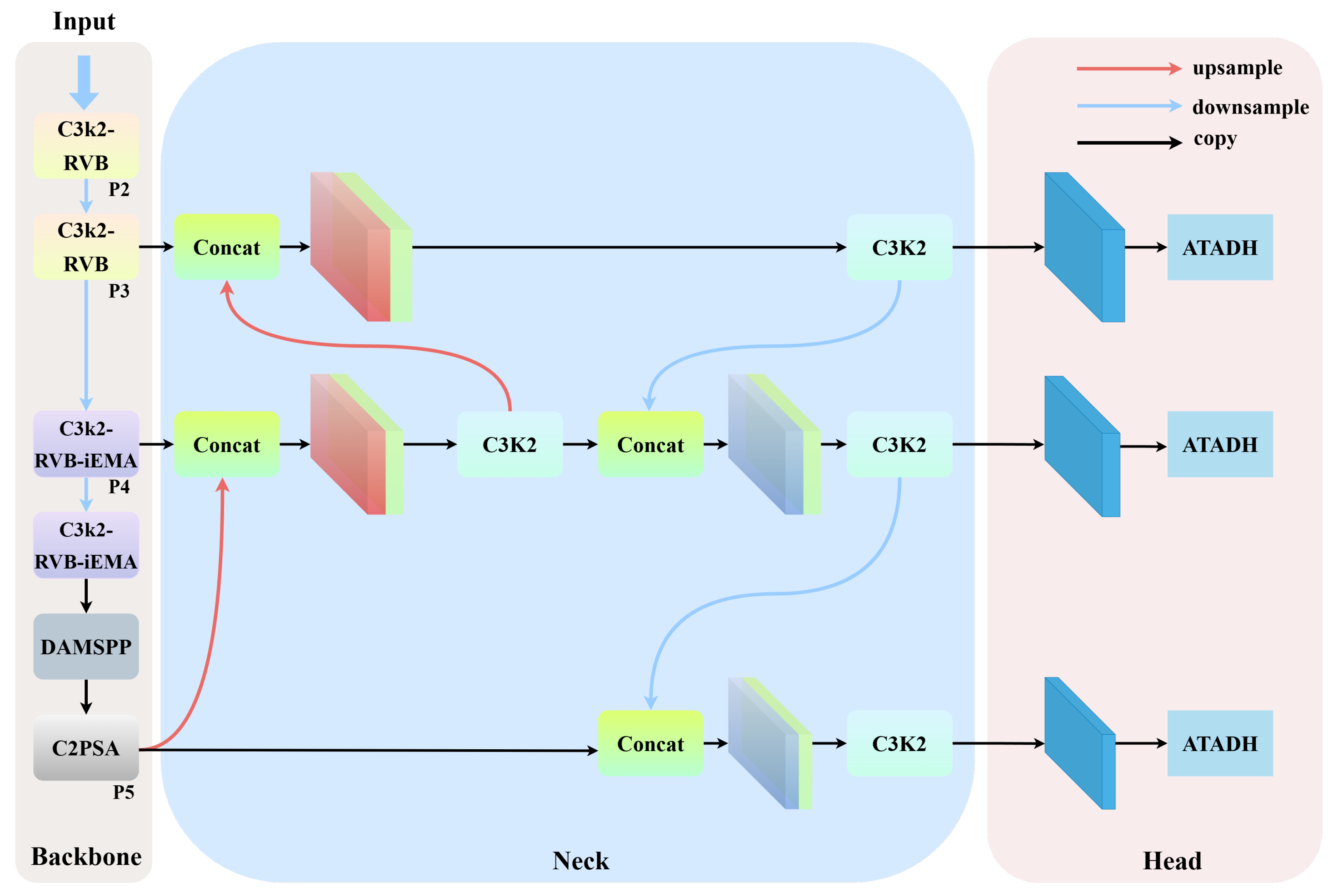 Figure 4 illustrates the architectural framework of the optimized RDT-YOLO, with the core components detailed below.