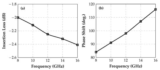 EM simulation results shown in Figure 6 indicate that the synthesized inverter exhibits ≈ insertion loss and maintains the 90° phase shift only at ; the phase deviates by ∼30° at the band edges, consistent with Equation (18).