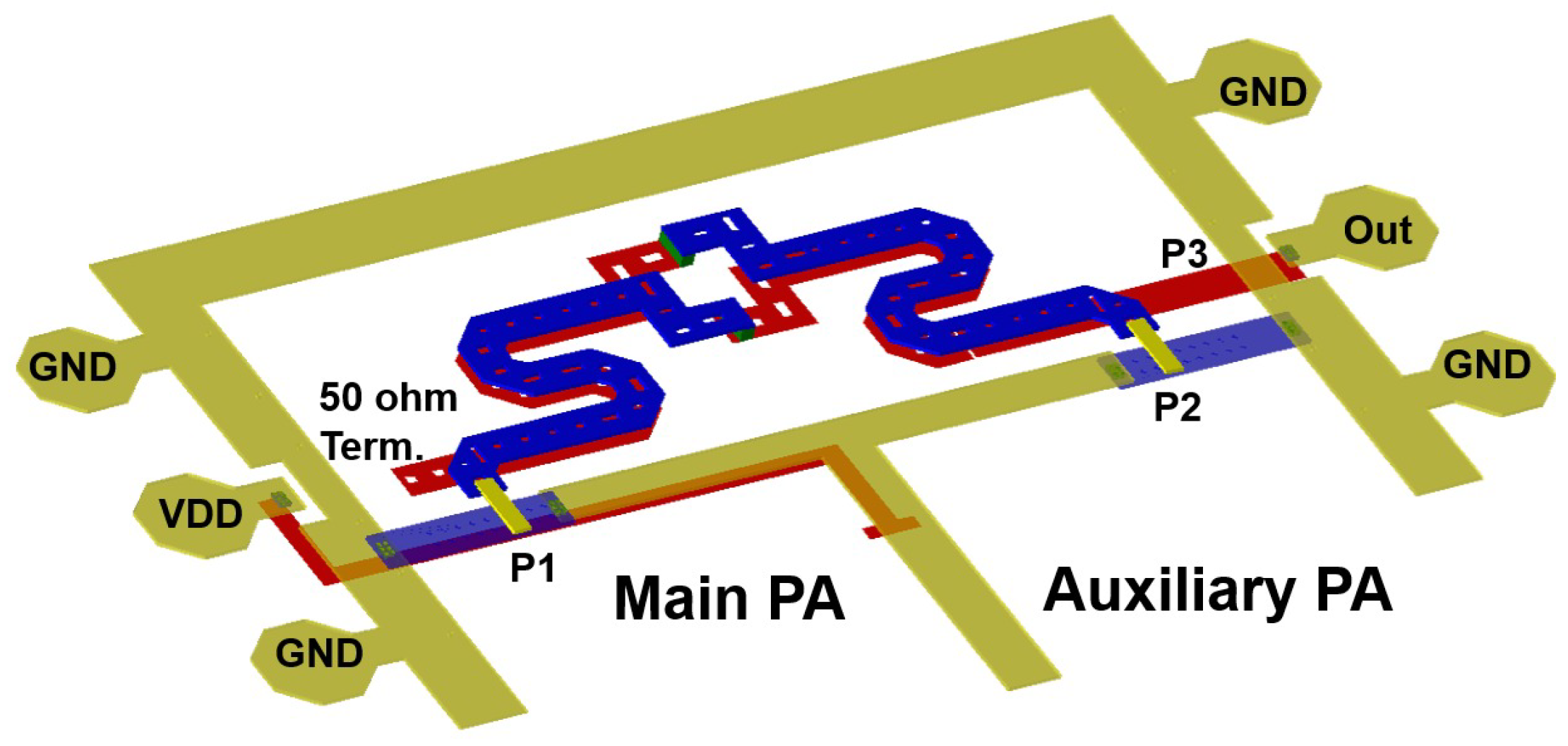 - A passive co-design methodology that accounts for on-chip attenuation and phase dispersion to sustain hybrid balance and DPA linearity over a large fractional bandwidth.
