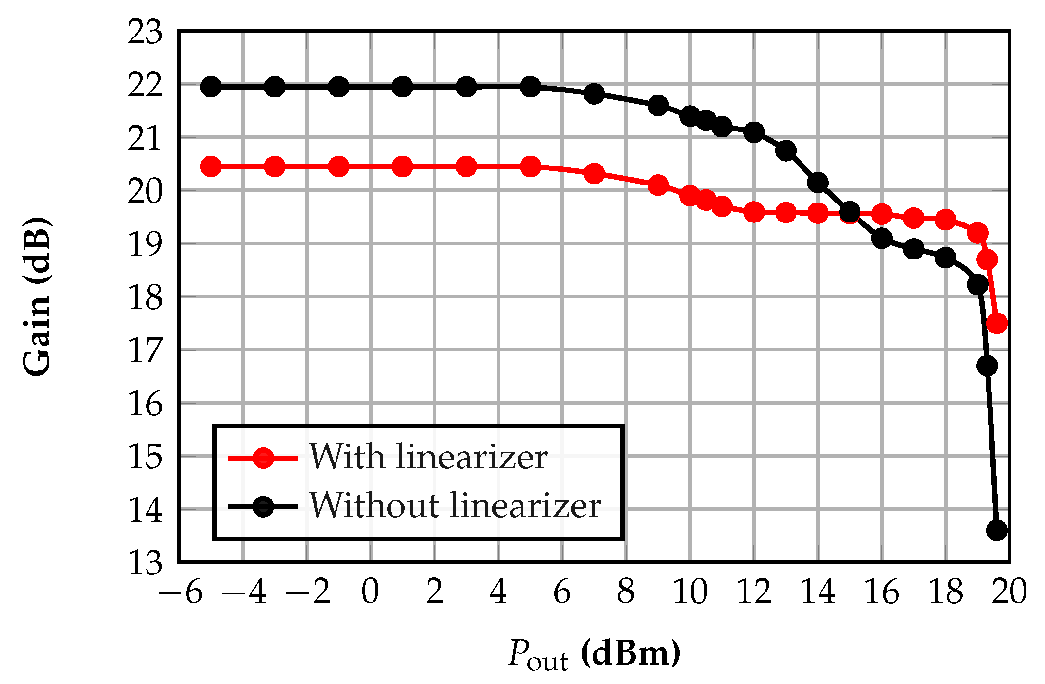 - Rostomyan, N.; Jayamon, J.A.; Asbeck, P.M. 15 GHz Doherty Power Amplifier with RF Predistortion Linearizer in CMOS SOI. IEEE Trans. Microw. Theory Techn. 2018, 66, 1339–1348. [Google Scholar] [CrossRef]