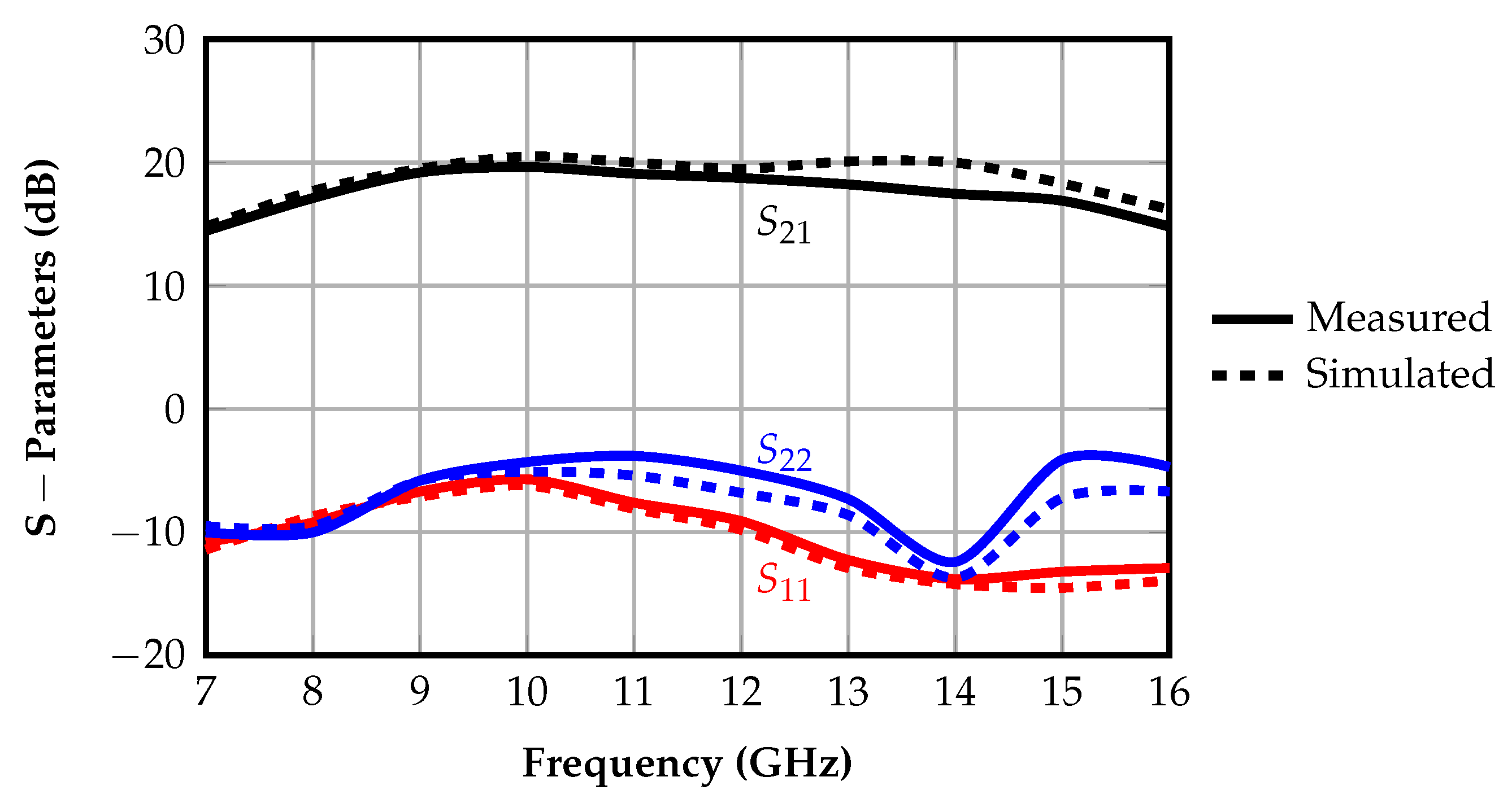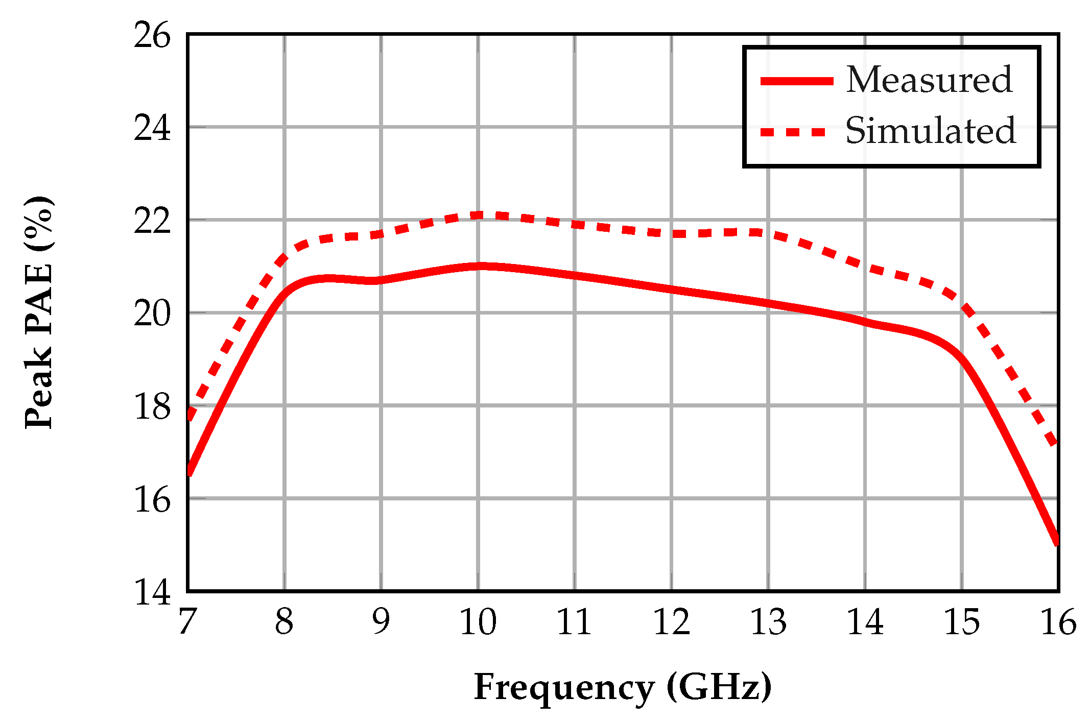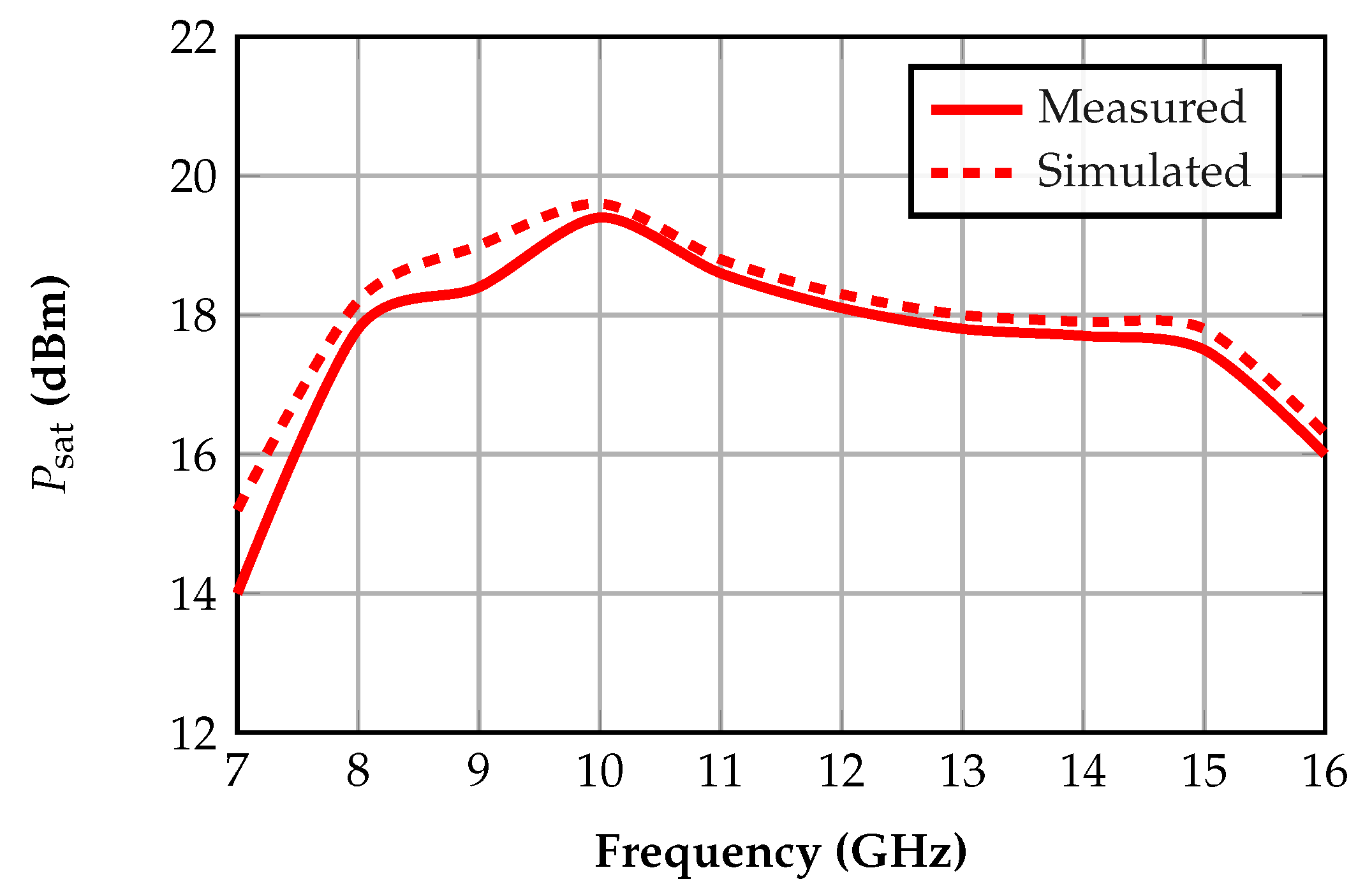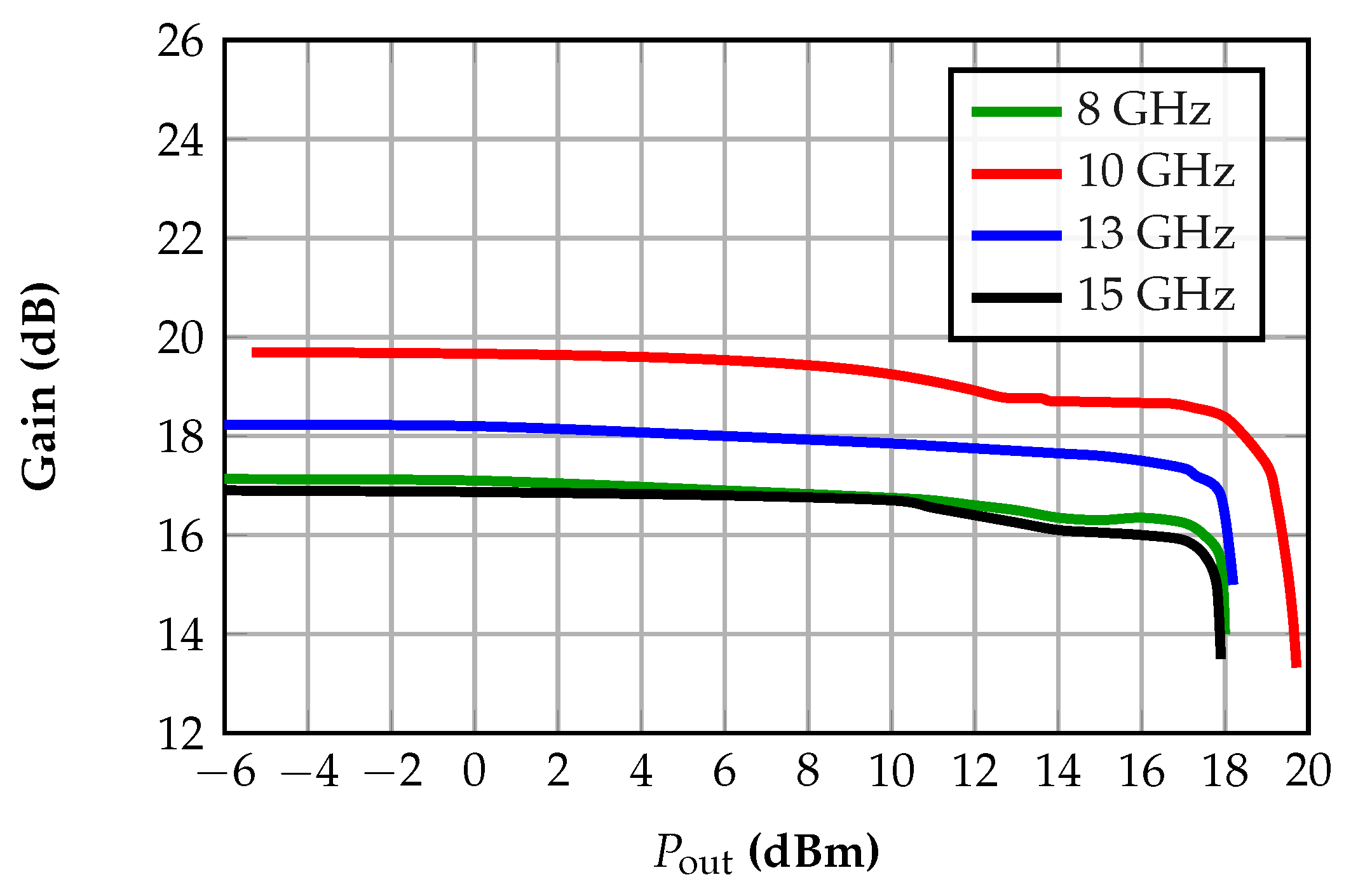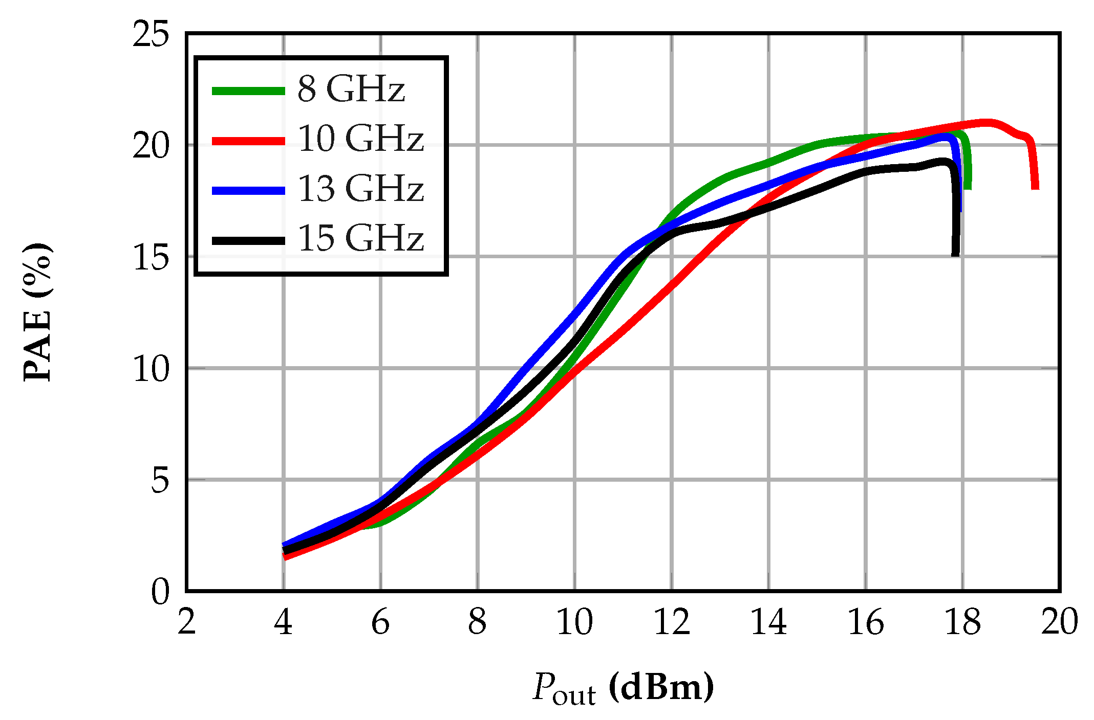 - Trinh, V.-S.; Nam, H.; Park, J.-D. A 20.5-dBm X-Band Power Amplifier with a 1.2-V Supply in 65-nm CMOS Technology. IEEE Microw. Wirel. Compon. Lett. 2019, 29, 234–236. [Google Scholar] [CrossRef]