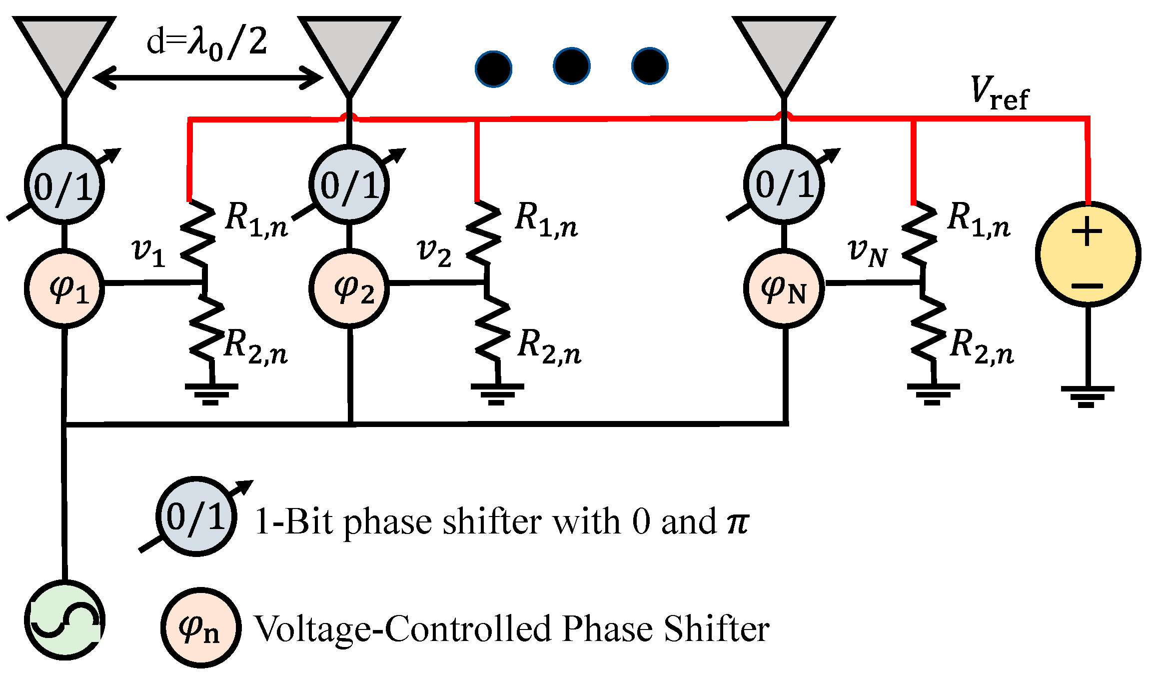 - Al-Khalidi, A.H.; Ahmed, M.M.; Abdullah, S.A. Uniform Linear Antenna array Beamsteering Based on Progressive Phase. Electronics 2023, 12, 780. [Google Scholar] [CrossRef]