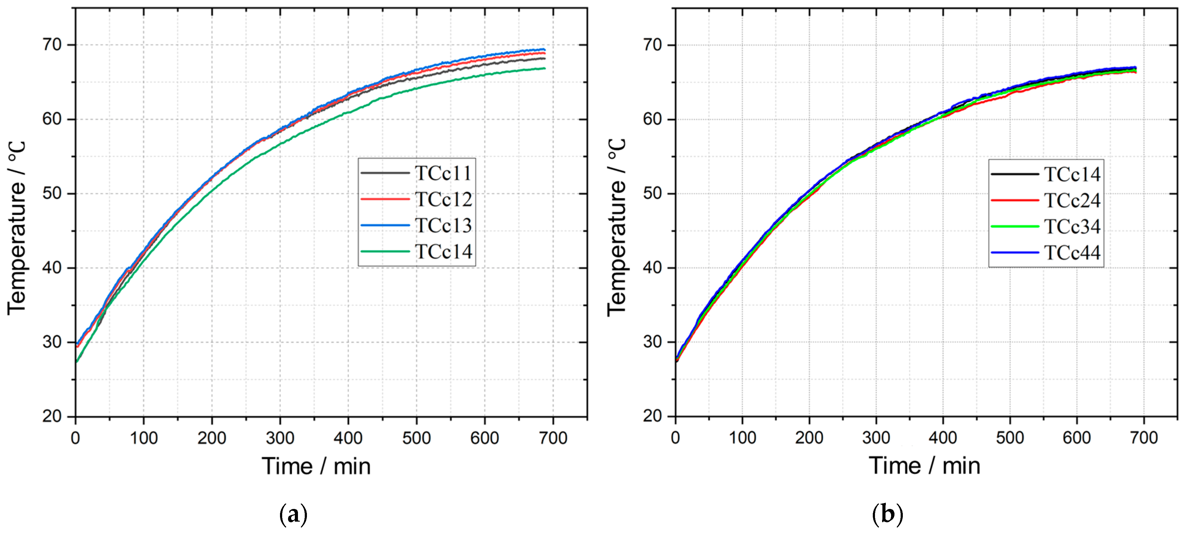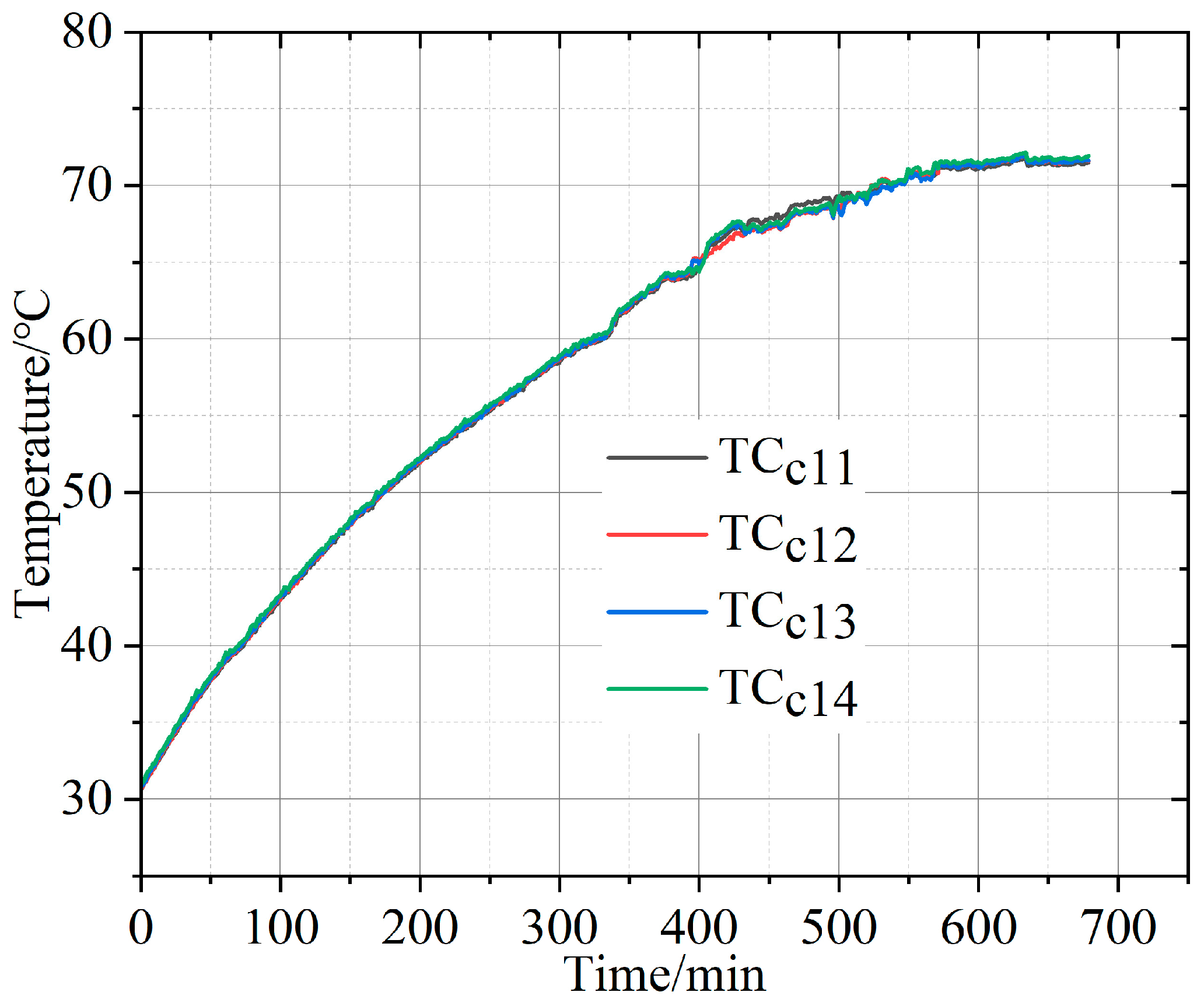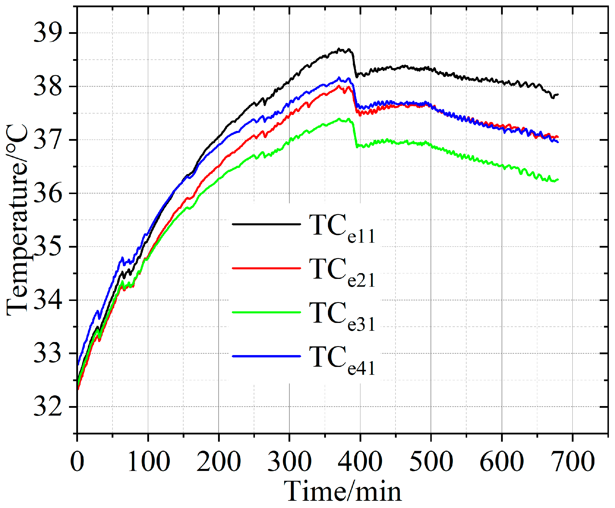 | Phase | Thermocouple Number | Starting Temperature/°C | Ending Temperature (680 min)/°C | Temperature Rise/K |