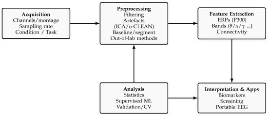 EEG pipeline synthesised from the reviewed studies.