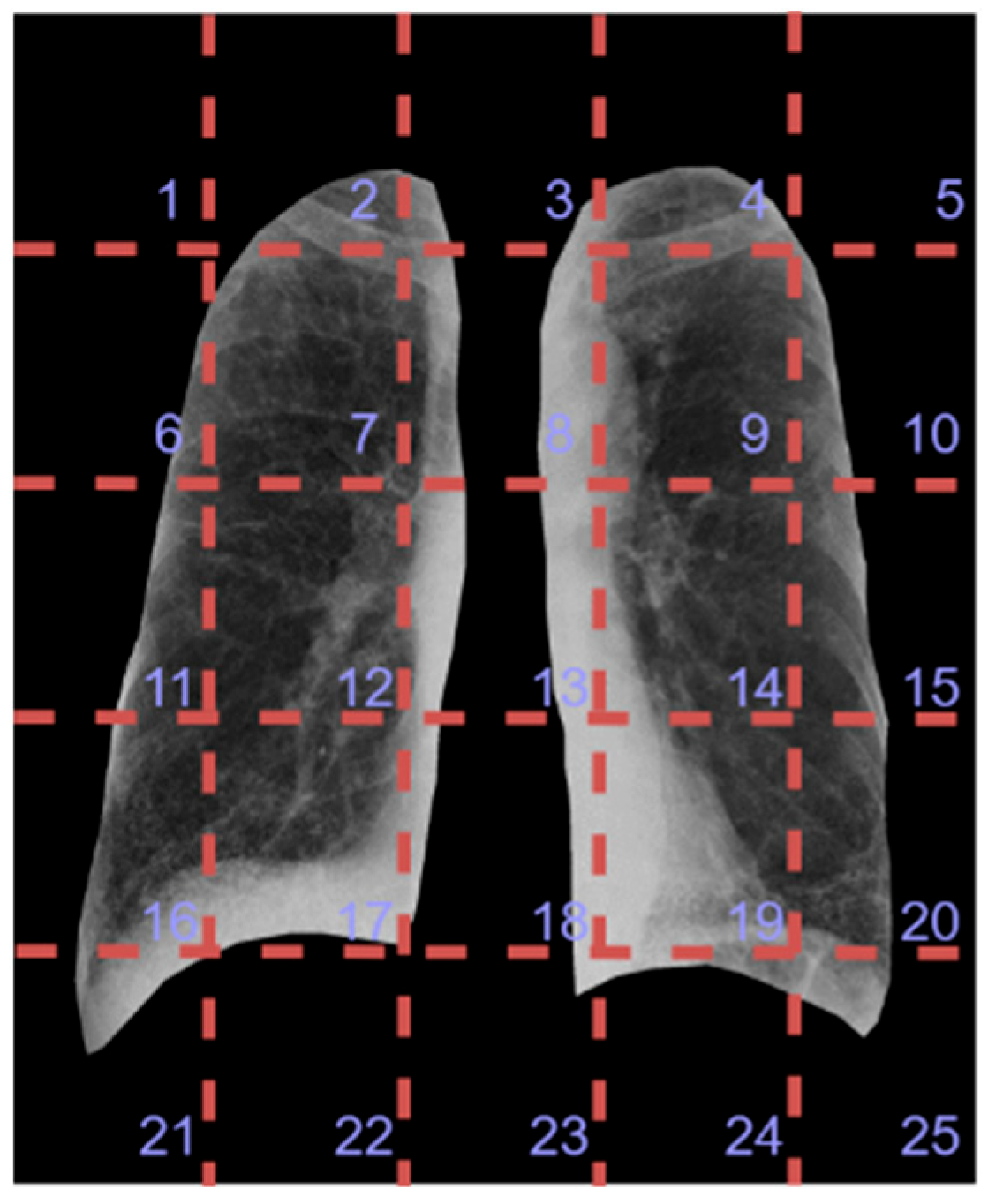 The training and evaluation of the proposed architecture were carefully designed to ensure effective learning and generalization to the target task. A total of 200 high-quality chest X-ray (CXR) images were collected from Taichung Veterans General Hospital (TCVGH), Taiwan. These images were obtained from patients who had been clinically diagnosed with idiopathic pulmonary fibrosis (IPF) or interstitial lung disease (ILD) by certified pulmonologists. Since there is no universally accepted staging system for ILD/IPF, disease severity in these patients was assessed based on the results of high-resolution computed tomography (HRCT) and pulmonary function tests (PFTs) performed at the time of diagnosis.