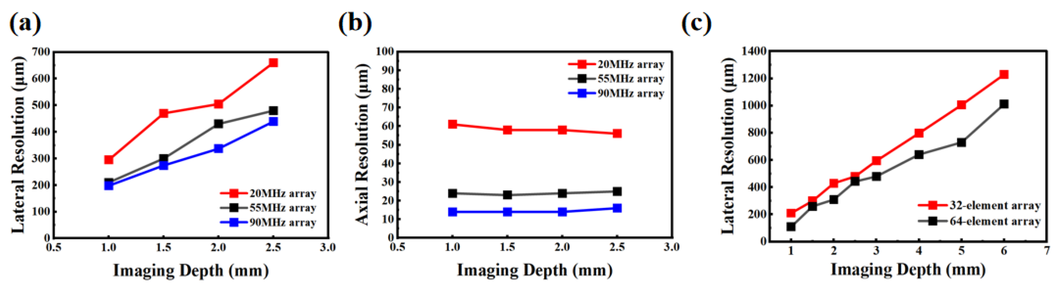 - Sung, J.H.; Jeong, J.S. Development of high-frequency (>60 MHz) intravascular ultrasound (IVUS) transducer by using asymmetric electrodes for improved beam profile. Sensors 2018, 18, 4414. [Google Scholar] [CrossRef]