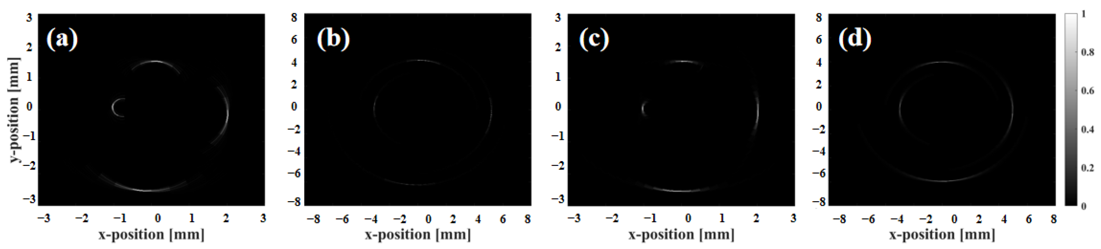 - Kang, S.; Lee, J.; Chang, J.H. Effectiveness of synthetic aperture focusing and coherence factor weighting for intravascular ultrasound imaging. Ultrasonics 2021, 113, 106364. [Google Scholar] [CrossRef]