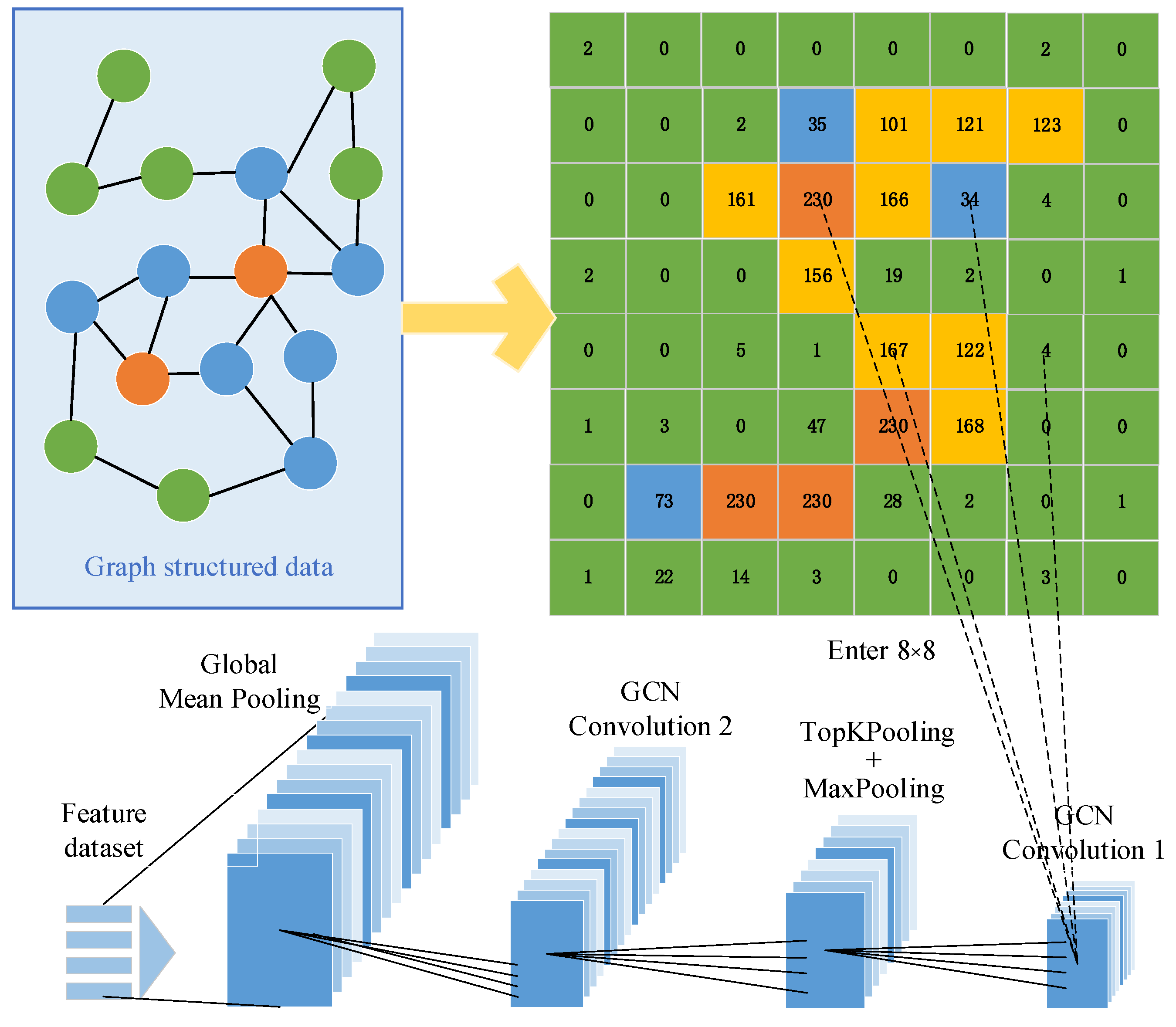 | Graph normalization method | Symmetric normalization | Stabilizes graph signal propagation in GCN. |