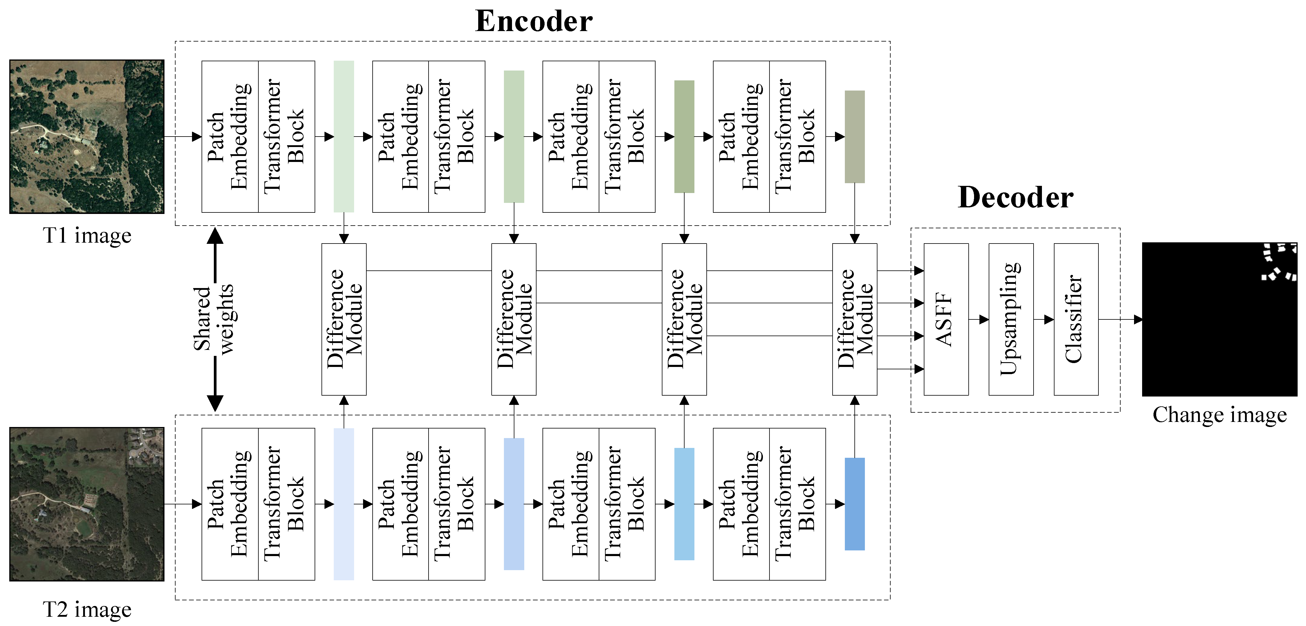 In terms of handling extremely subtle changes, such as tiny alterations in vegetation coverage on the LEVIR—CD dataset, MSTAN may occasionally miss some of these minute changes. It may limit the model’s applicability in certain sensitive target perception tasks. This is because the four-layer ASFF module, while excellent at fusing multi—scale features for prominent changes, might not be sufficiently sensitive to such extremely fine—grained variations, which can lead to a slight decrease in recall for these specific cases.