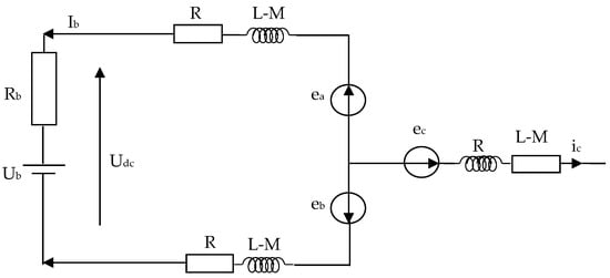 The DC bus voltage (Udc), which charges the battery, can be determined by utilizing the results from Equations (32) and (33).