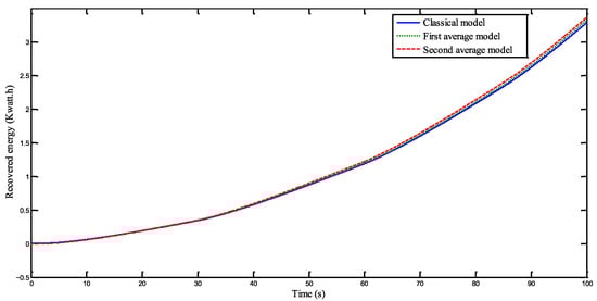 Figure 16 illustrates the time evolution of the battery recharging voltage for the three model cases. It also highlights the close similarity among the three results, which confirms the validity of the developed study.