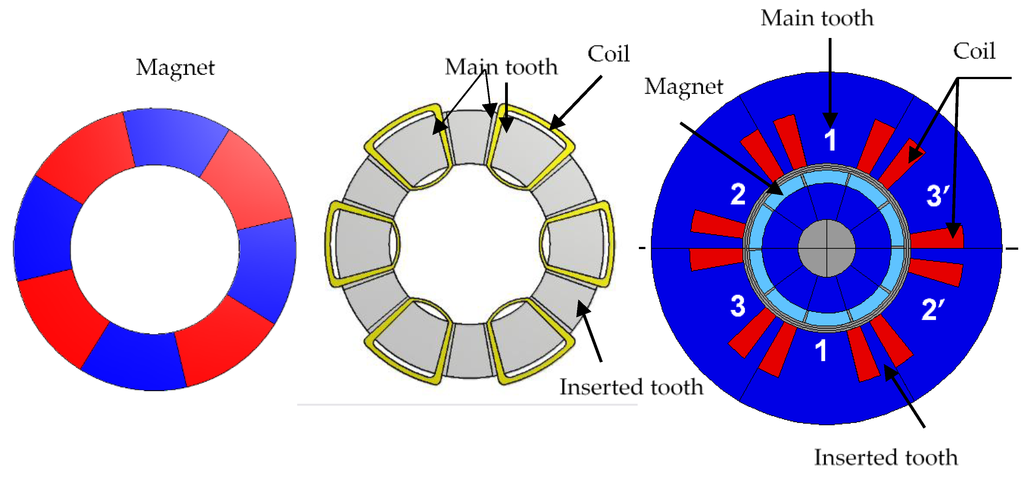 Based on Equations (10)–(13), the magnet thickness is determined by defining the flux density in the air gap as