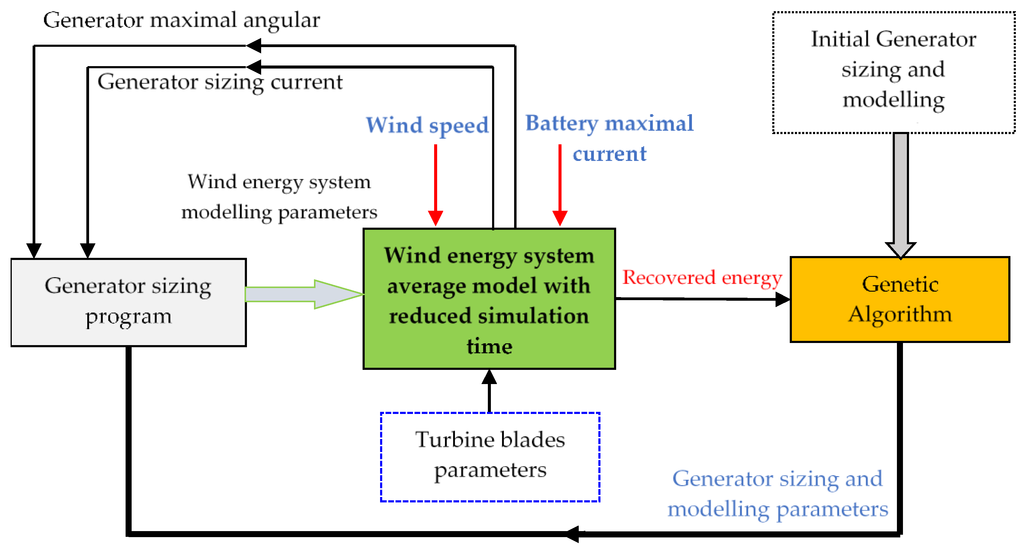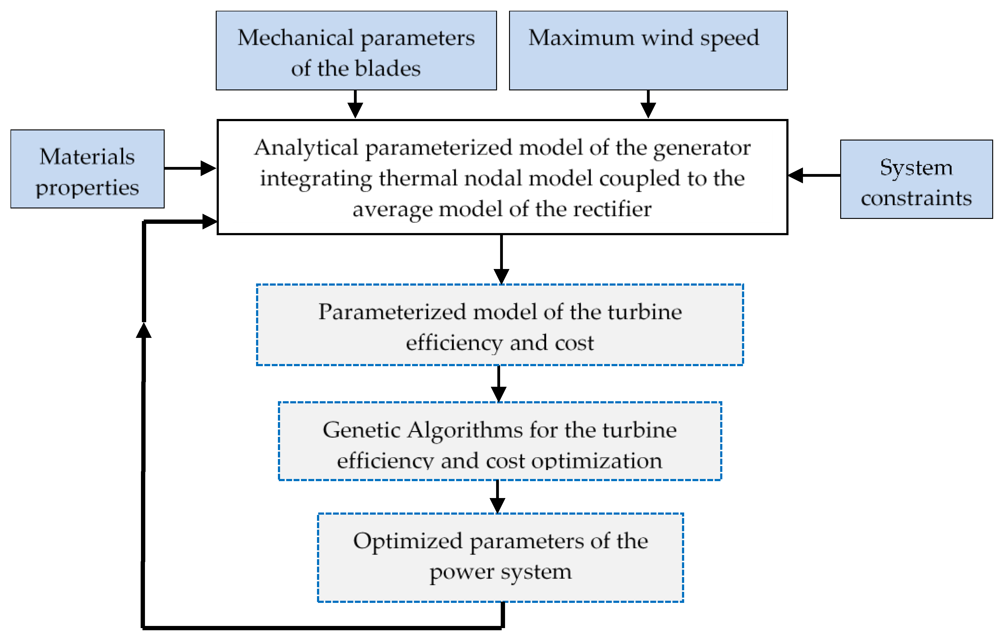 In this work, a GA is preferred for the optimization because it is not only robust and adaptive but also extensively used in solving nonlinear and multi-objective problems characteristic of wind energy conversion systems. Unlike other classical deterministic methods, the GA does not require the differentiability or convexity of the objective function. This makes it specially adapted to optimization problems involving complex interactions between the aerodynamic, electromagnetic, and thermal phenomena of the conversion chain.