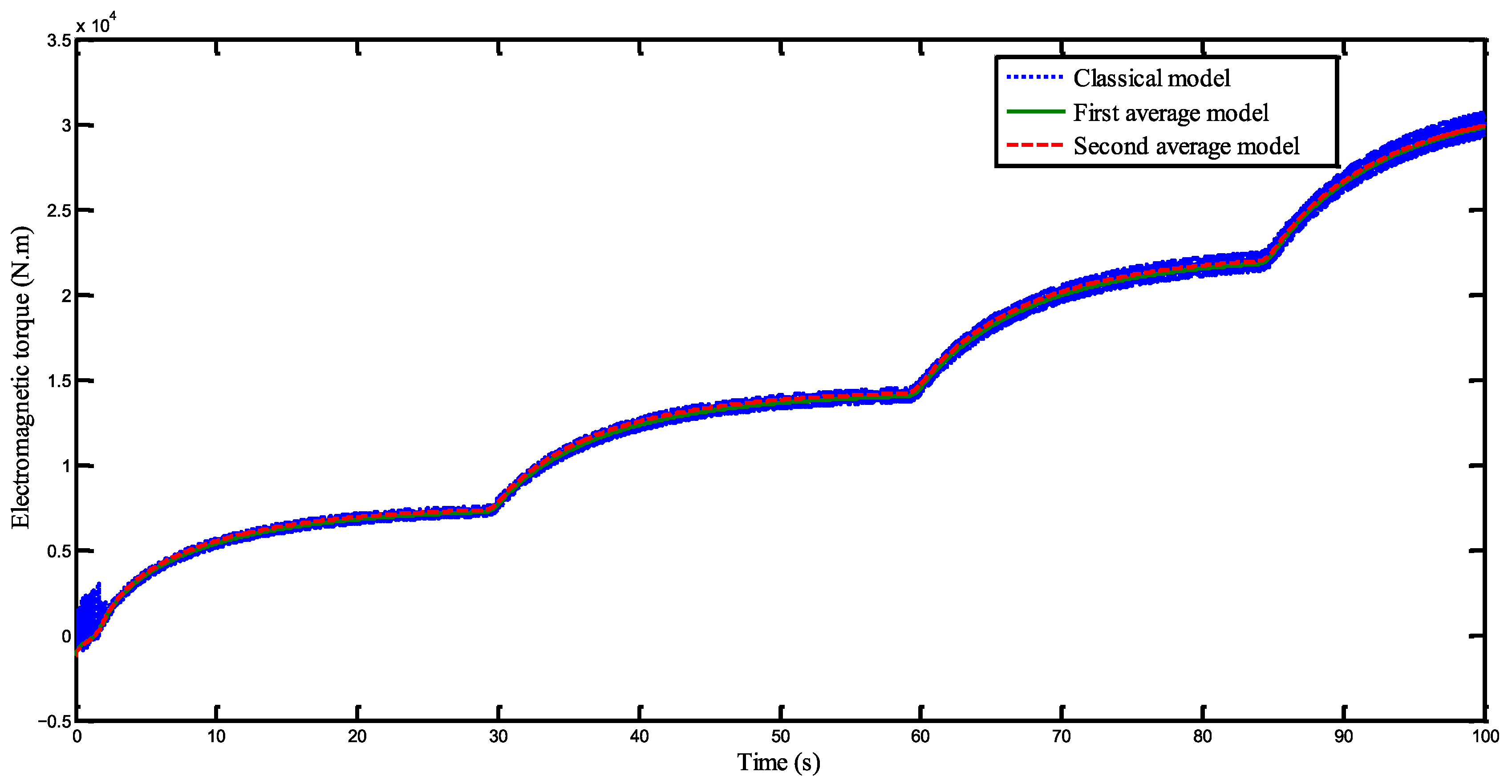 Figure 15 presents the time evolution of the electromagnetic torque for the three model cases. The close agreement between the results confirms the validity of the developed study.