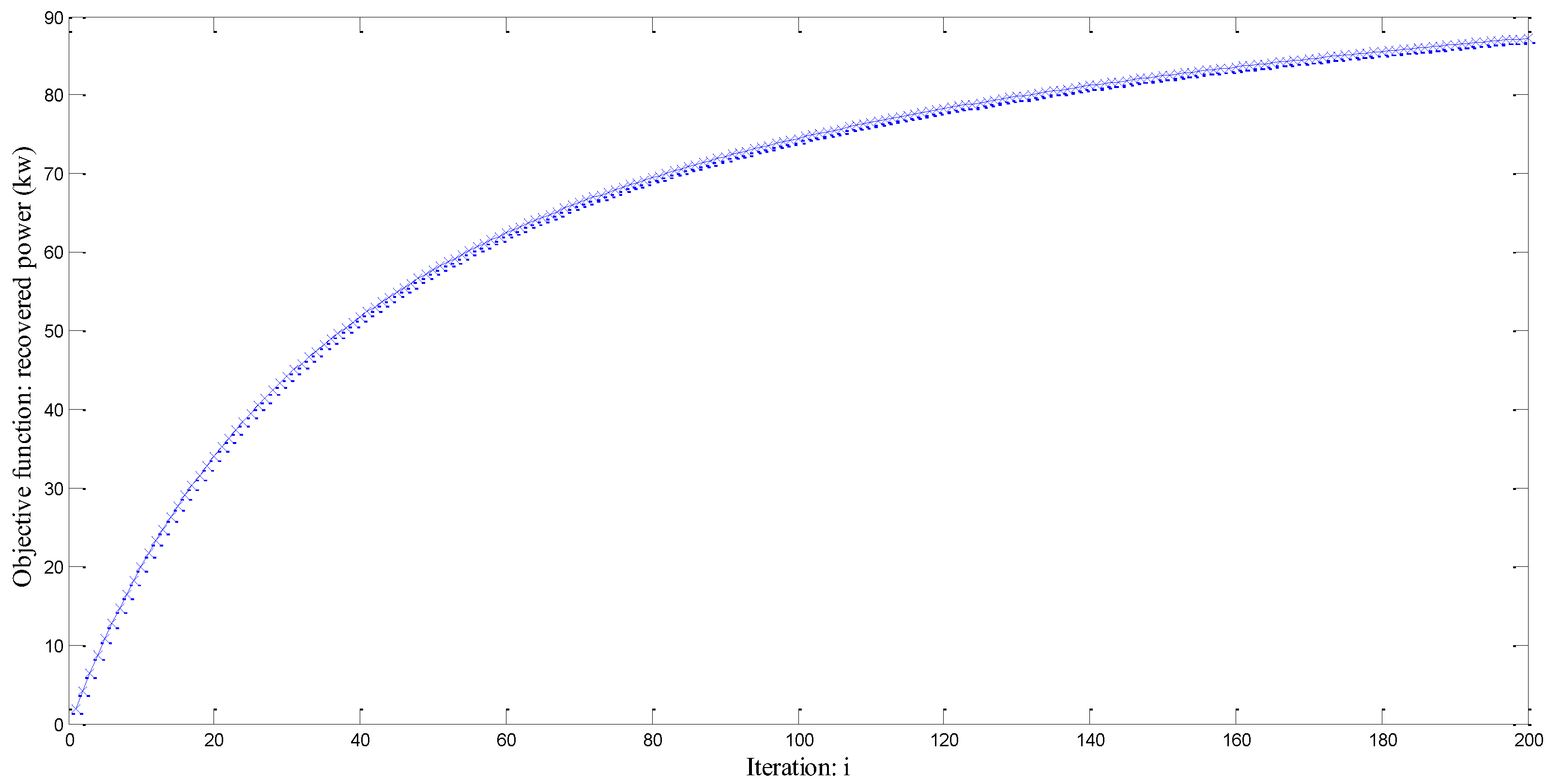 Figure 20 illustrates the evolution of objective function for 200 iterations. The simulation time is approximately 2.5 days. It illustrates that the optimal solution is not achieved.