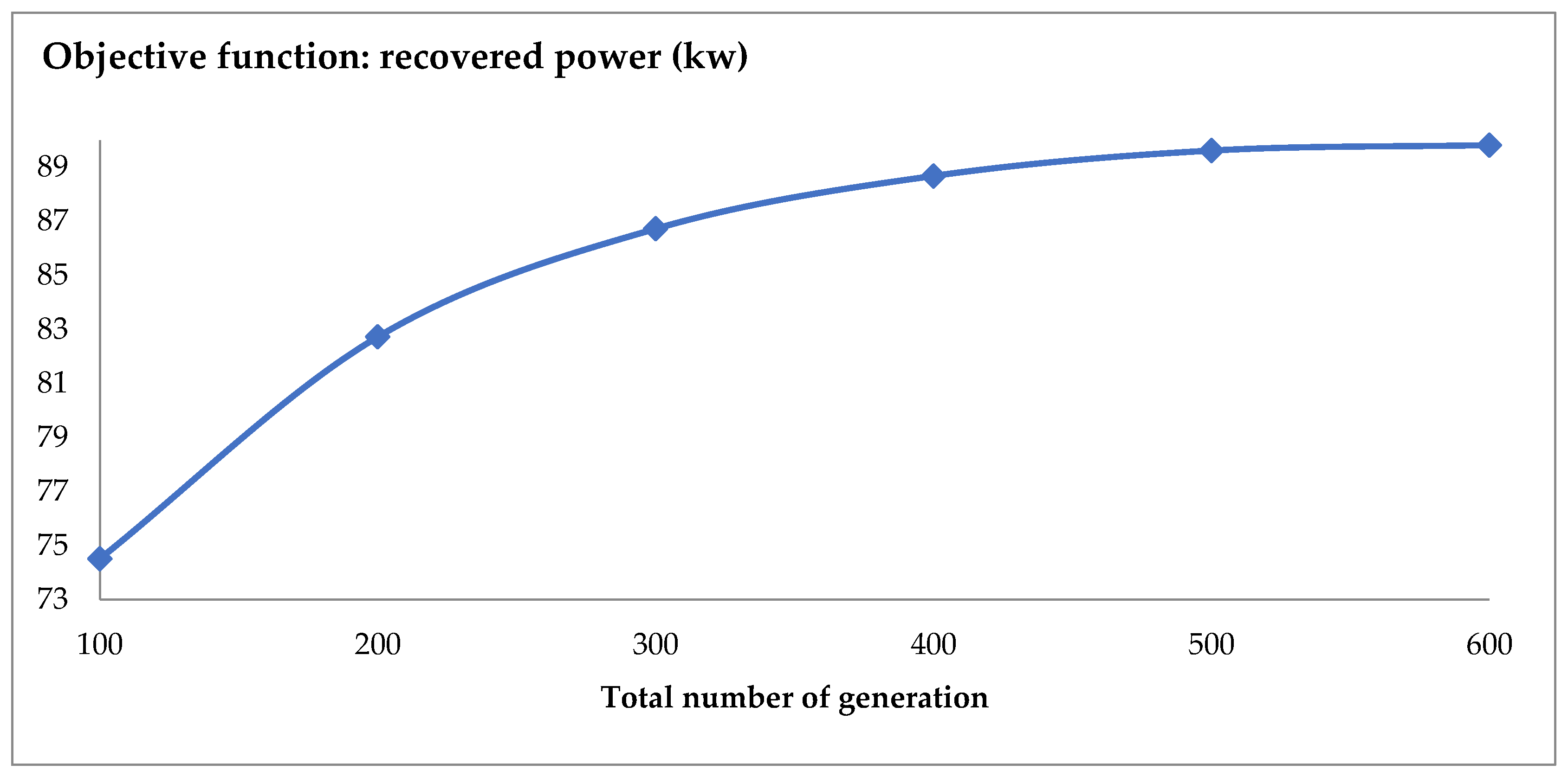 6.2.6. Optimal Value of the Recovered Power (kw) in Function Total Generations Number