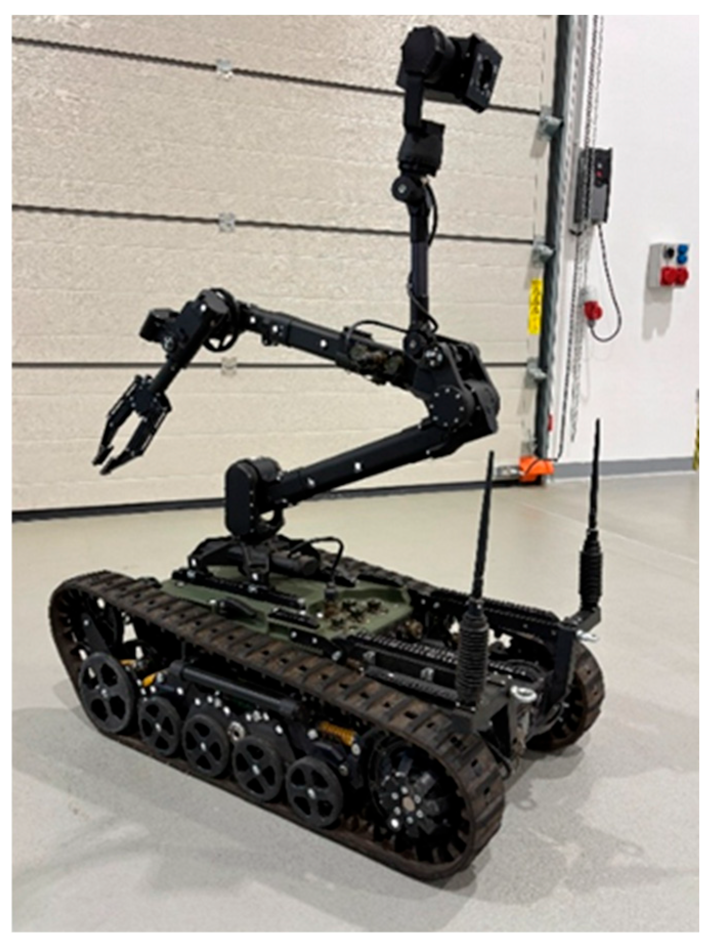 - Typiak, A. Sterowanie Mobilnymi Maszynami Inżynieryjnymi w Układzie Teleoperacji; Wojskowa Akademia Techniczna: Warsaw, Poland, 2013. (In Polish) [Google Scholar]