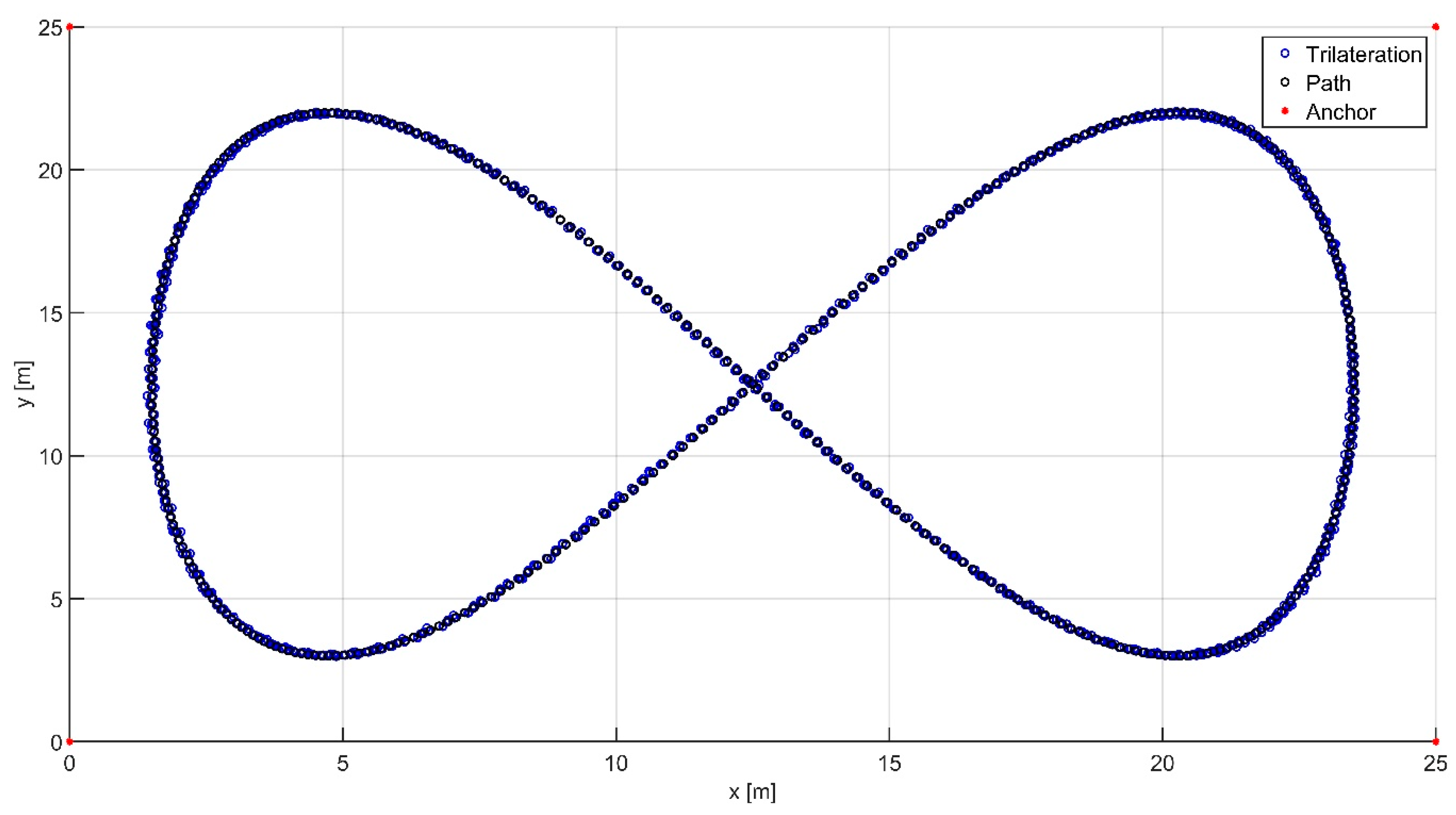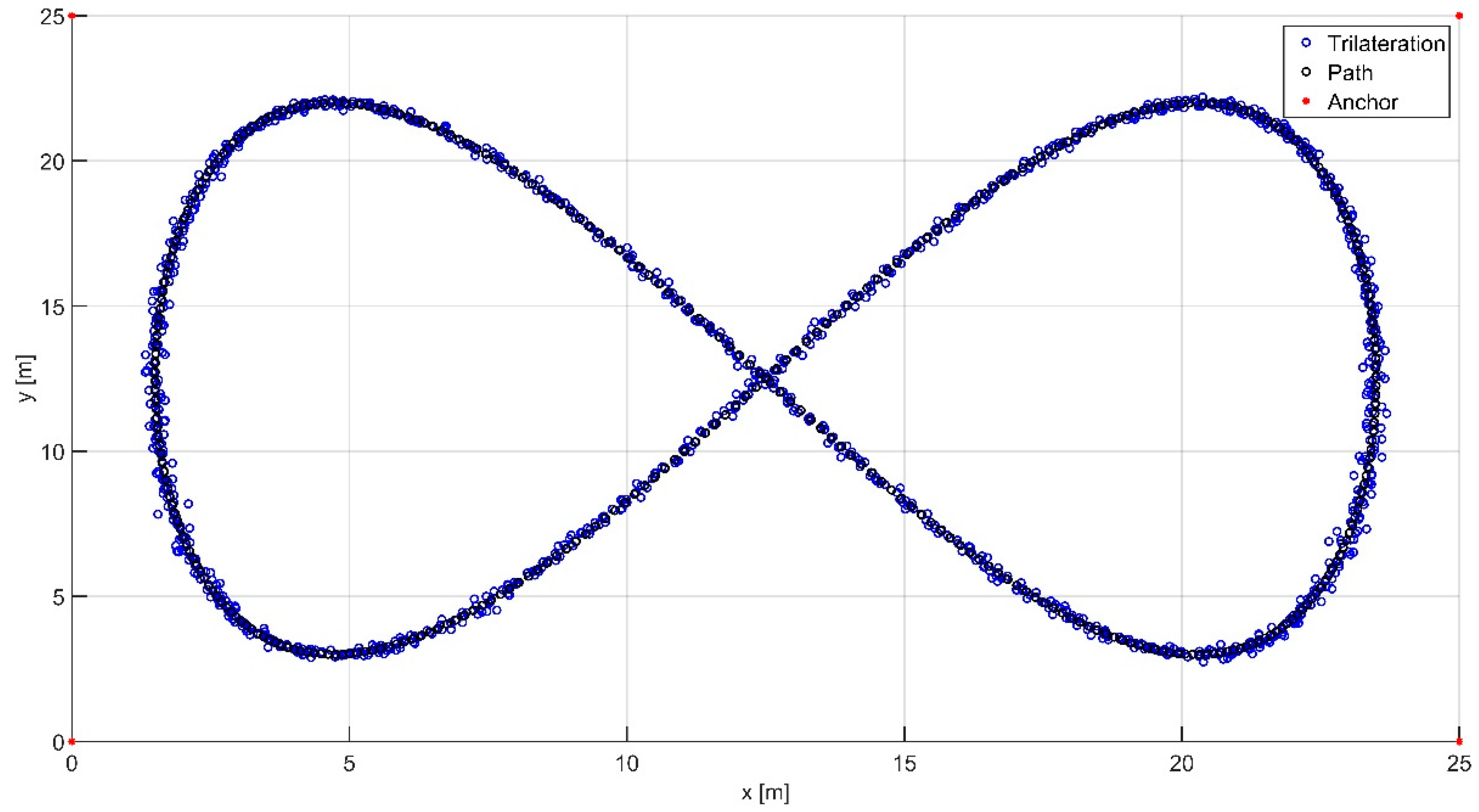 - Rykała, Ł.; Typiak, A.; Typiak, R.; Rykała, M. Application of Smoothing Spline in Determining the Unmanned Ground Vehicles Route Based on Ultra-Wideband Distance Measurements. Sensors 2022, 22, 8334. [Google Scholar] [CrossRef]