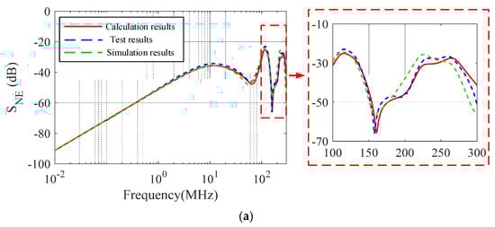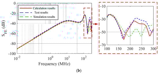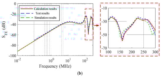 Figure 15 shows the comparison results between the calculated values and the crosstalk coefficients obtained through CST simulation and actual measurements under Scenario 2.