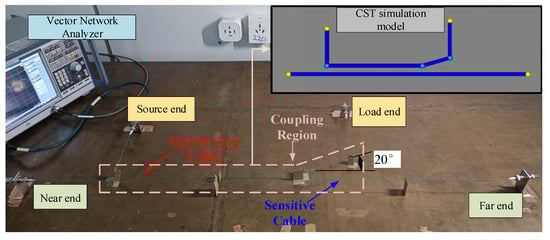 The interference cables used in the experiment share the same specifications as the sensitive cables: the conductor radius is 0.2 mm; the insulation thickness is 0.4 mm. Experimental validation of the crosstalk calculation method was carried out in this section using the three practical cable coupling models whose parameters are described in Table 1.