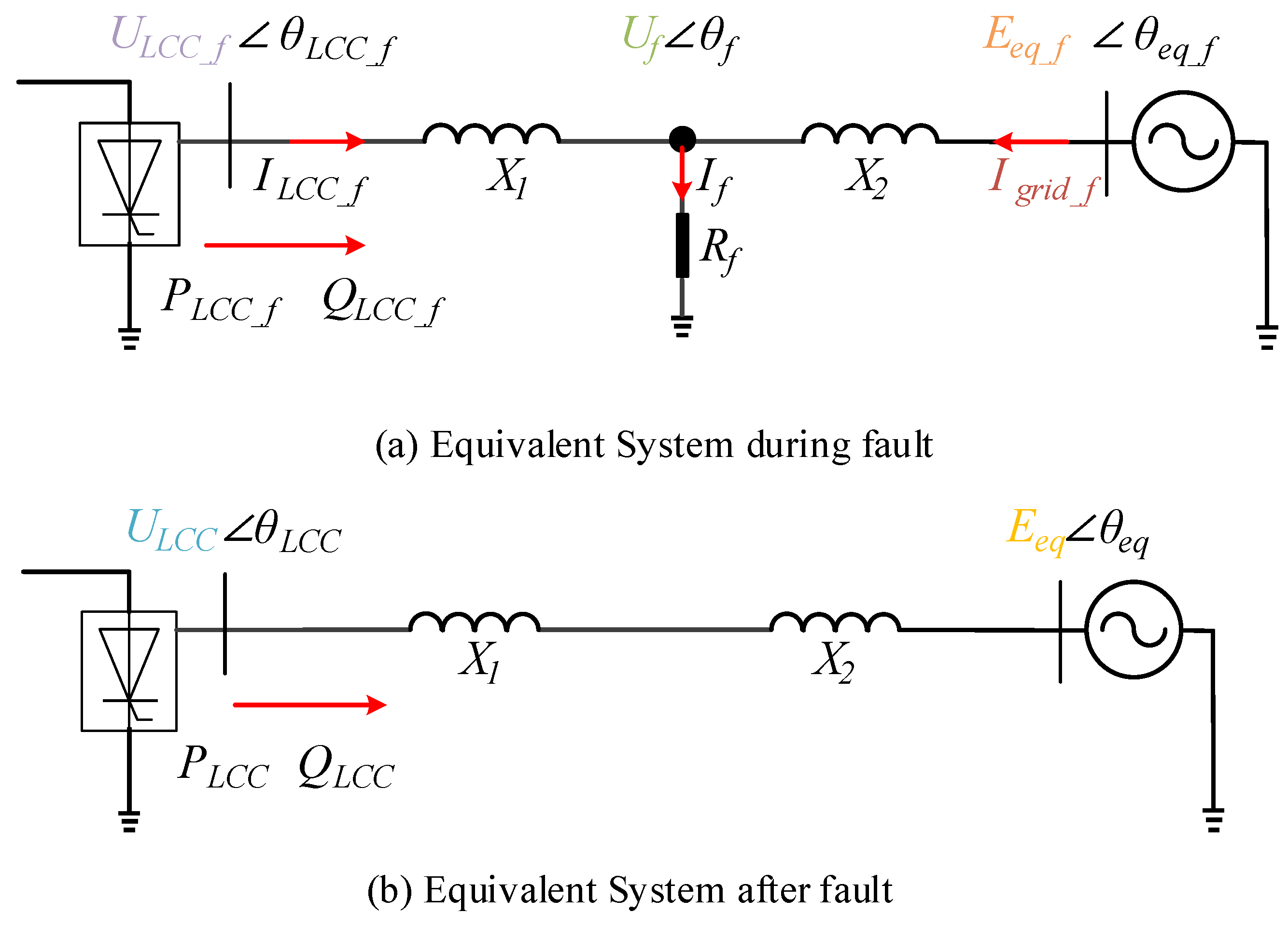 | QLCC, QLCC_f | reactive power output of LCC on AC side, reactive power output of LCC on AC side during the fault |