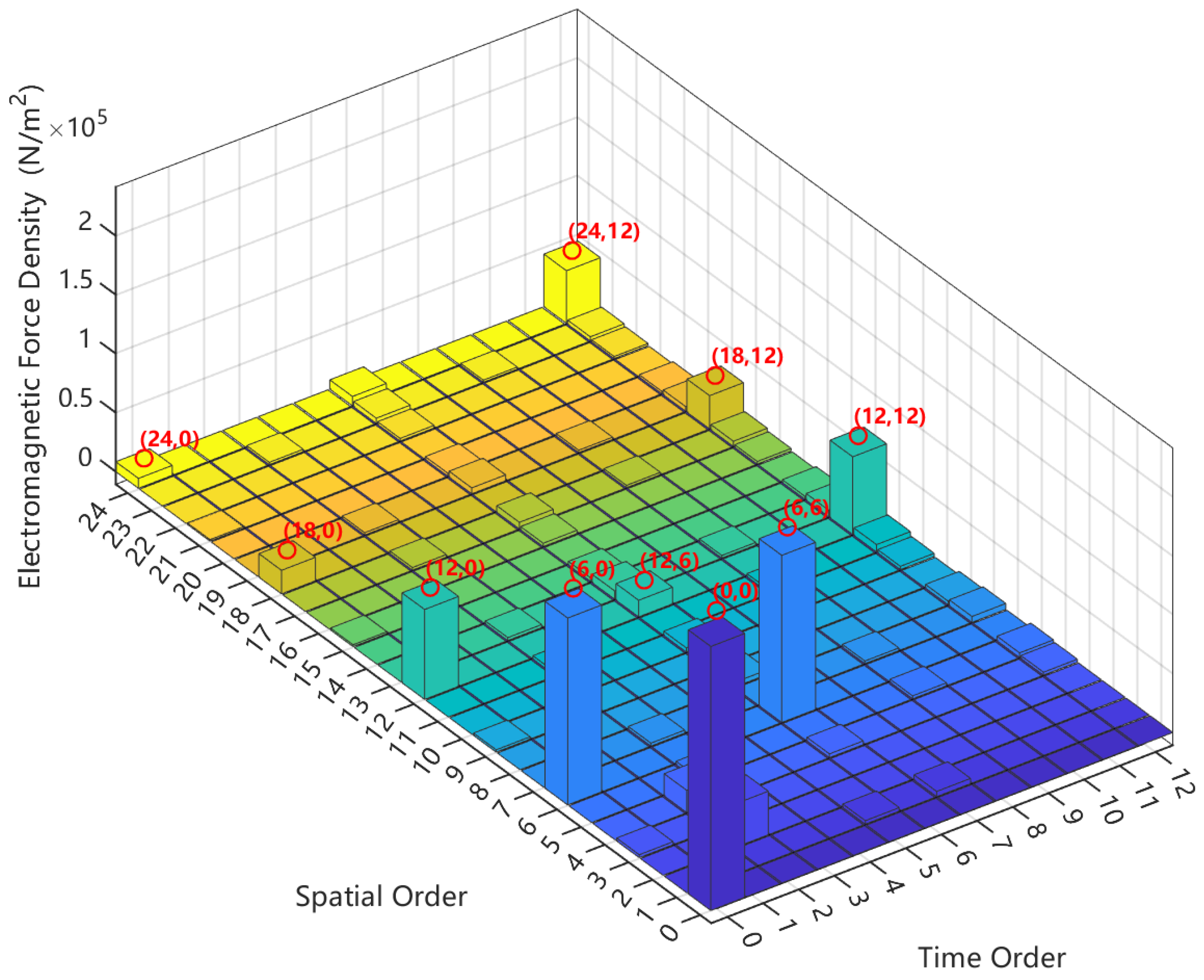 - A Tri-ECNVH integrated three-source coupling framework is proposed, in which radial electromagnetic force harmonics, torque ripple (tangential force), and cogging torque are uniformly mapped into the order domain and synthesized at the complex-amplitude level on a same-order basis.