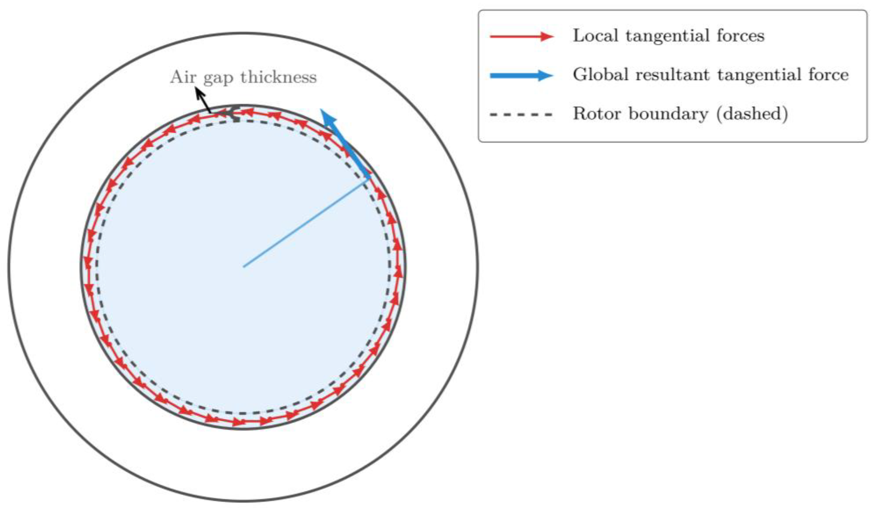 - Hong, J.; Gui, L.; Cao, J. Analysis and experimental verification of the tangential force effect on electromagnetic vibration of PM motor. IEEE Trans. Energy Convers. 2023, 38, 1893–1902. [Google Scholar] [CrossRef]