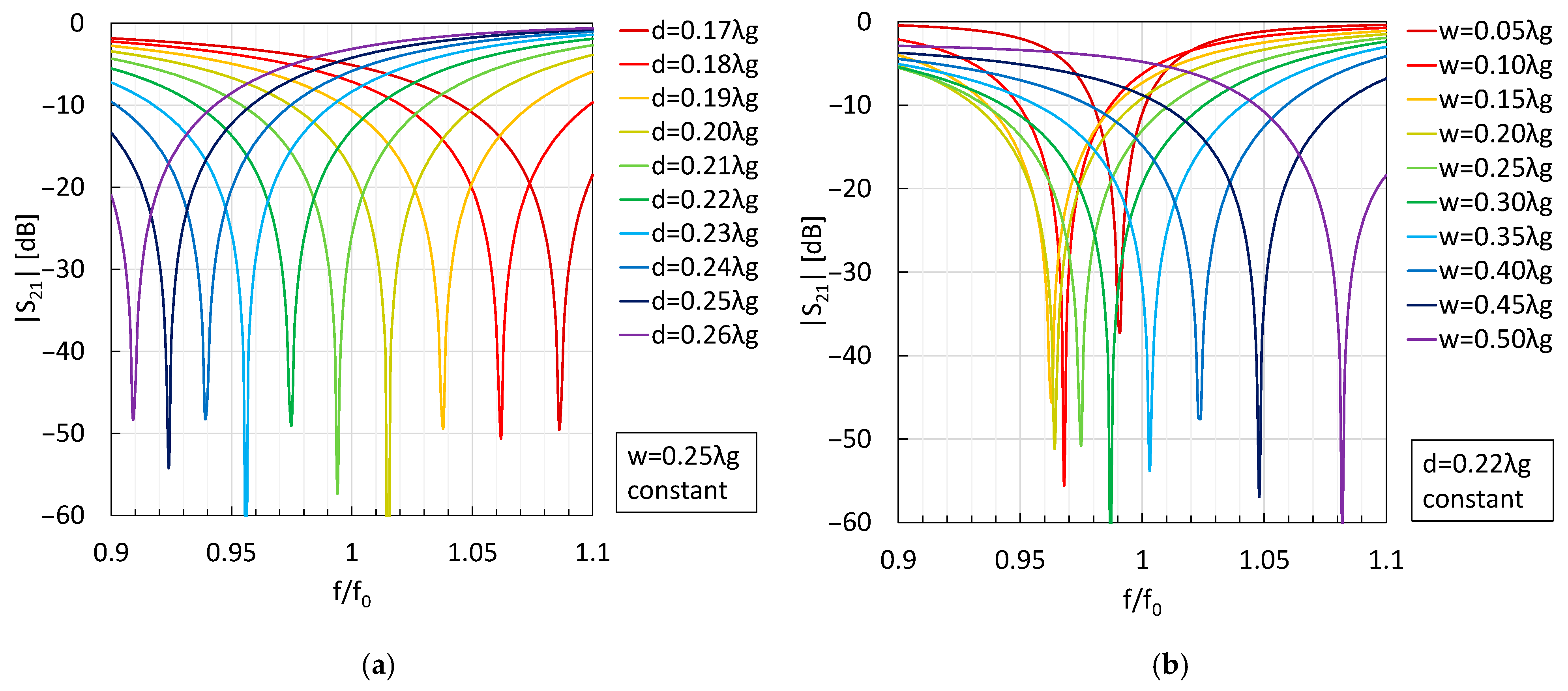 - Vale, C.A.W.; Meyer, P.; Palmer, K.D. A design procedure for bandstop filters in waveguides supporting multiple propagating modes. IEEE Trans. Microw. Theory Tech. 2000, 48, 2496–2503. [Google Scholar] [CrossRef]