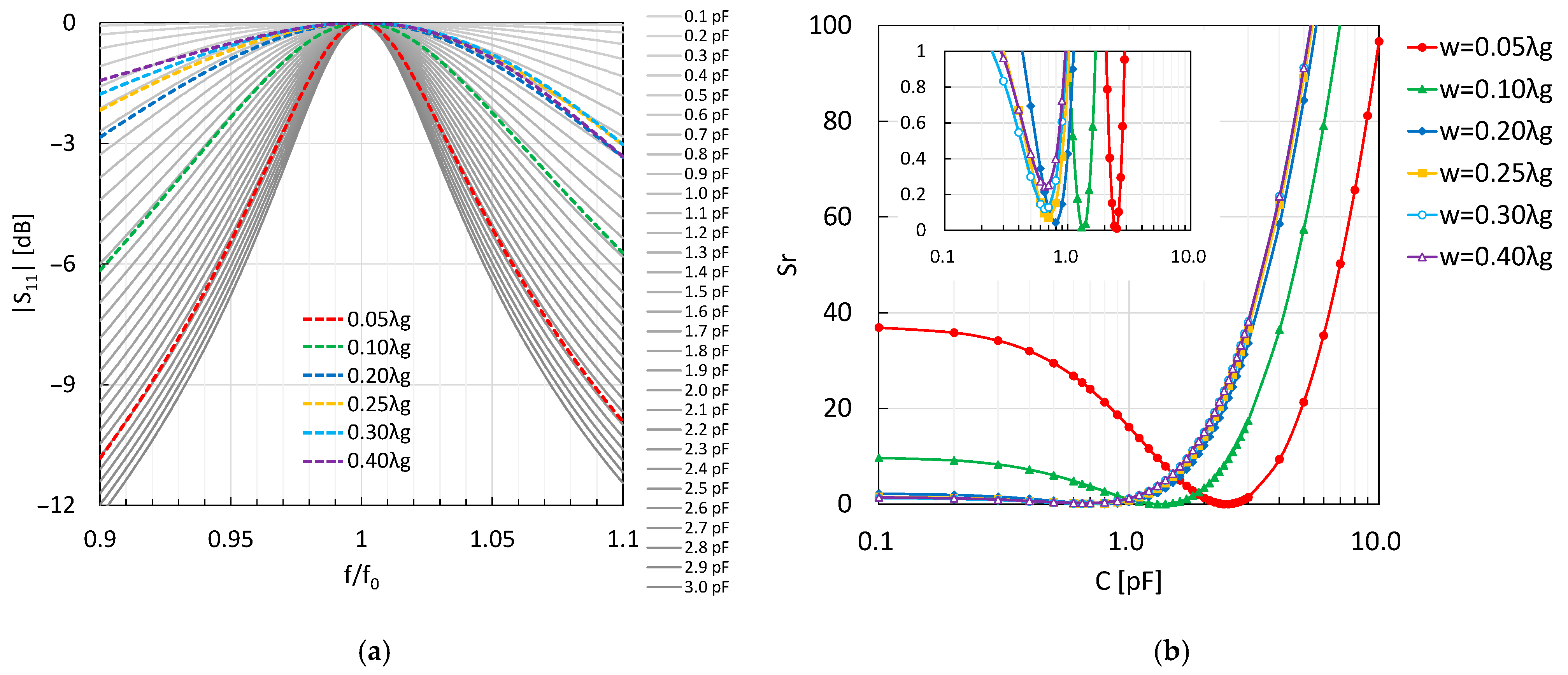- Pozar, D.M. Microwave Engineering, 4th ed.; John Wiley & Sons: Hoboken, NJ, USA, 2012; pp. 381–388. [Google Scholar]