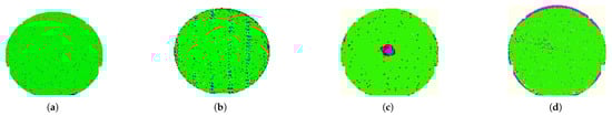 Wafer map samples. (a) Good. (b) CPF. (c) Local. (d) Edge.